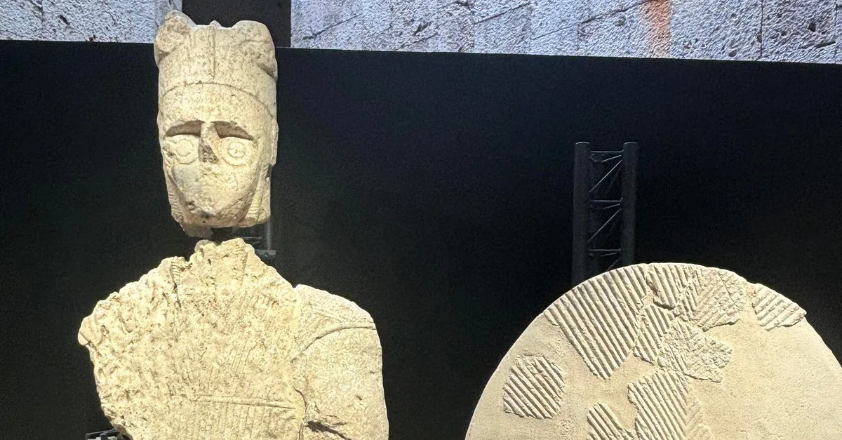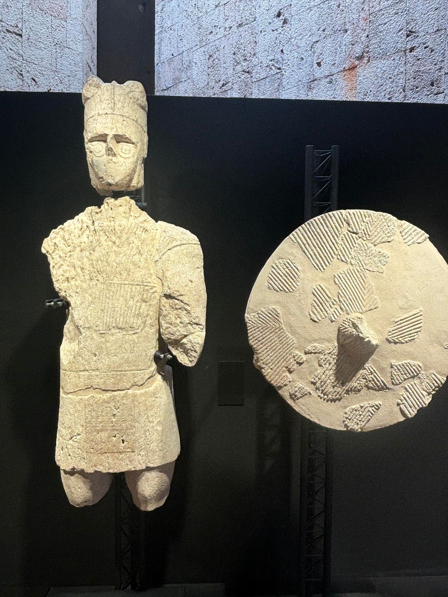 Warrior with shield, one of the Giants of Mont'e Prama, Nuragic statues found in the Province of Oristano, Sardinia, Italy, during the 1970s, dating from c. 900-750 BCE.