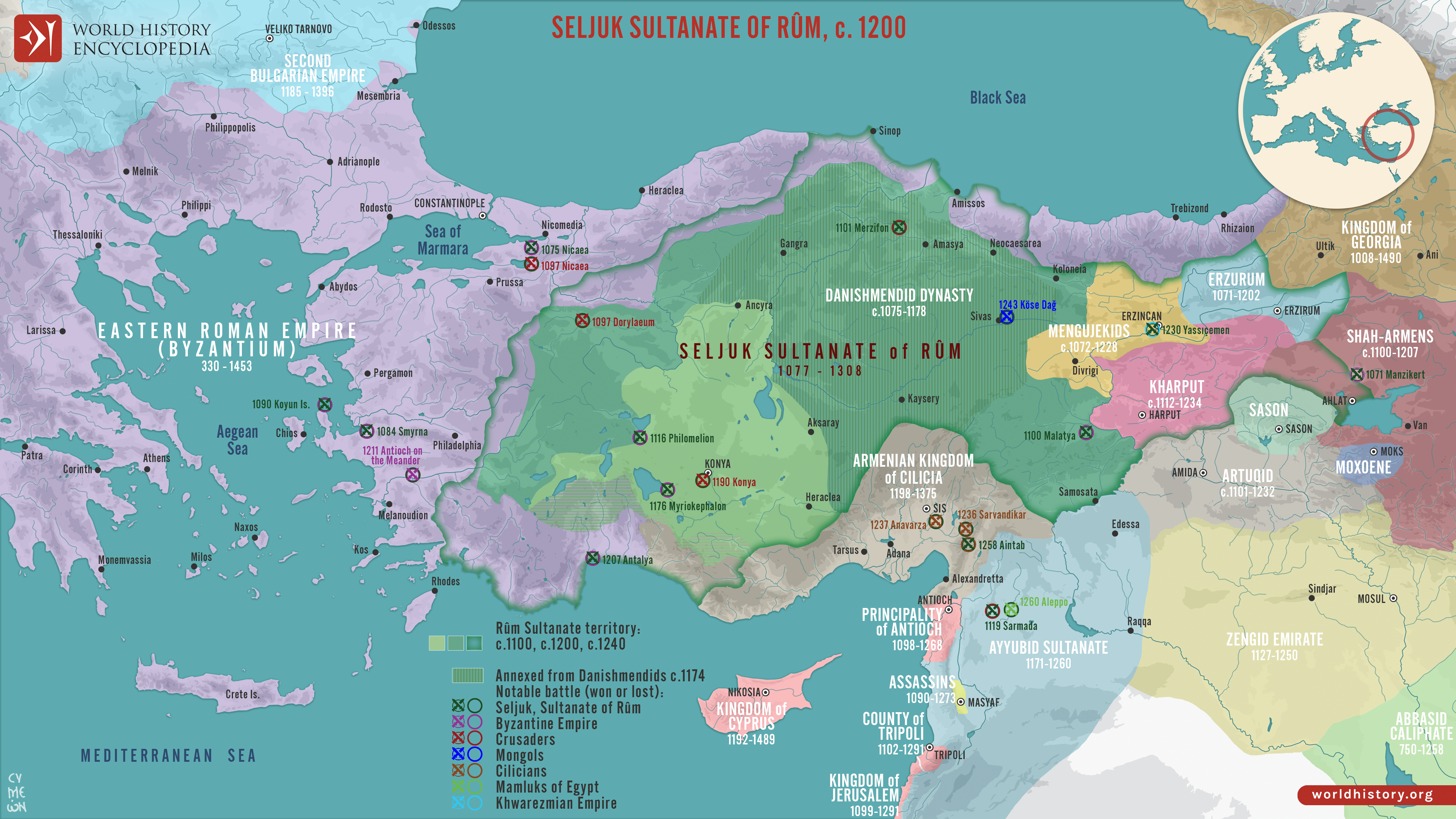 Netchev, S. (2024, September 06). Map of the Seljuk Sultanate of Rum, c. 1200. World History Encyclopedia. https://www.worldhistory.org/image/19415/map-of-the-seljuk-sultanate-of-rum-c-1200/