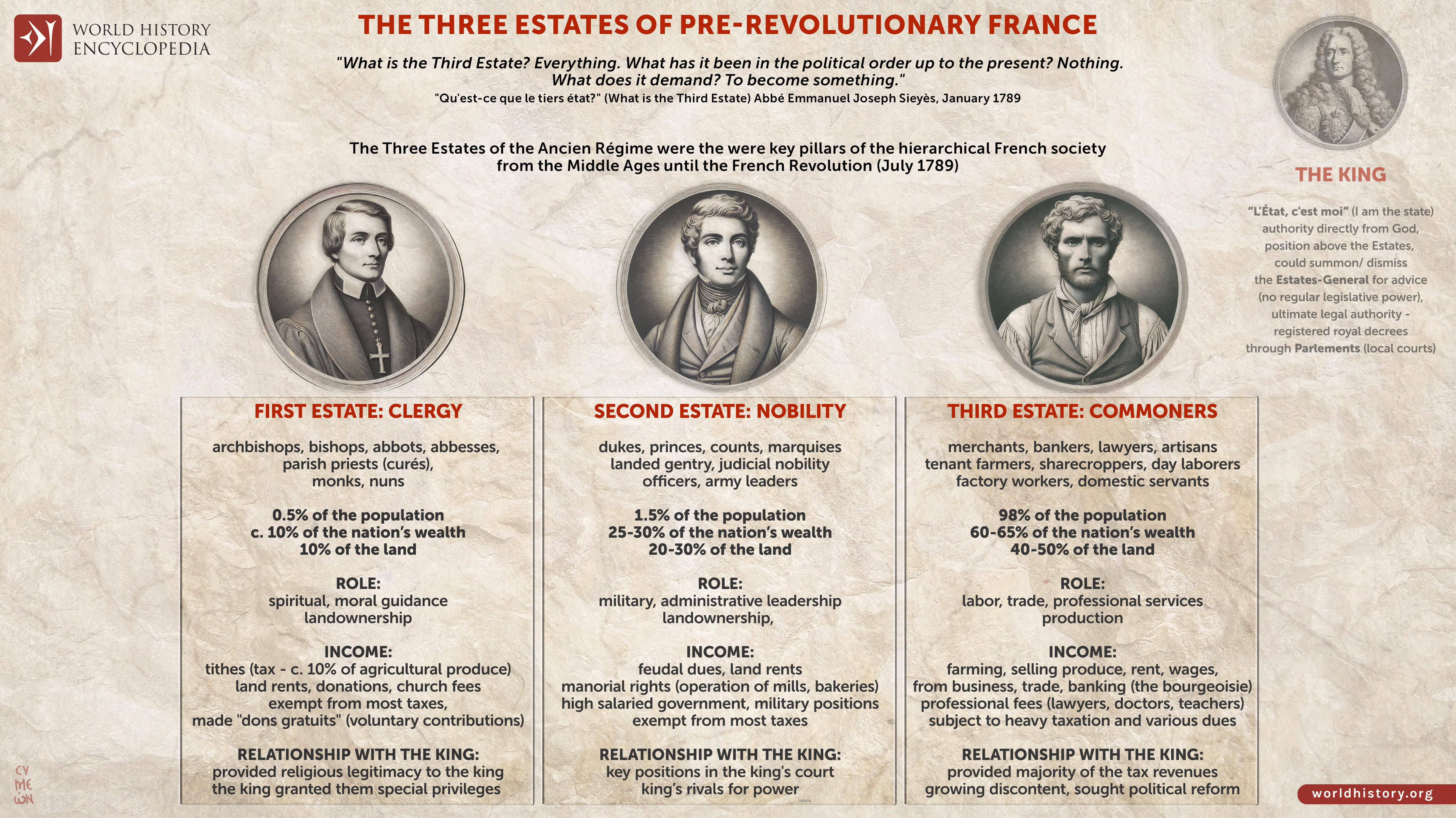 Netchev, Simeon. "The Three Estates of Pre-revolutionary France." World History Encyclopedia, 16 Sep 2024, https://www.worldhistory.org/image/19448/the-three-estates-of-pre-revolutionary-france/.