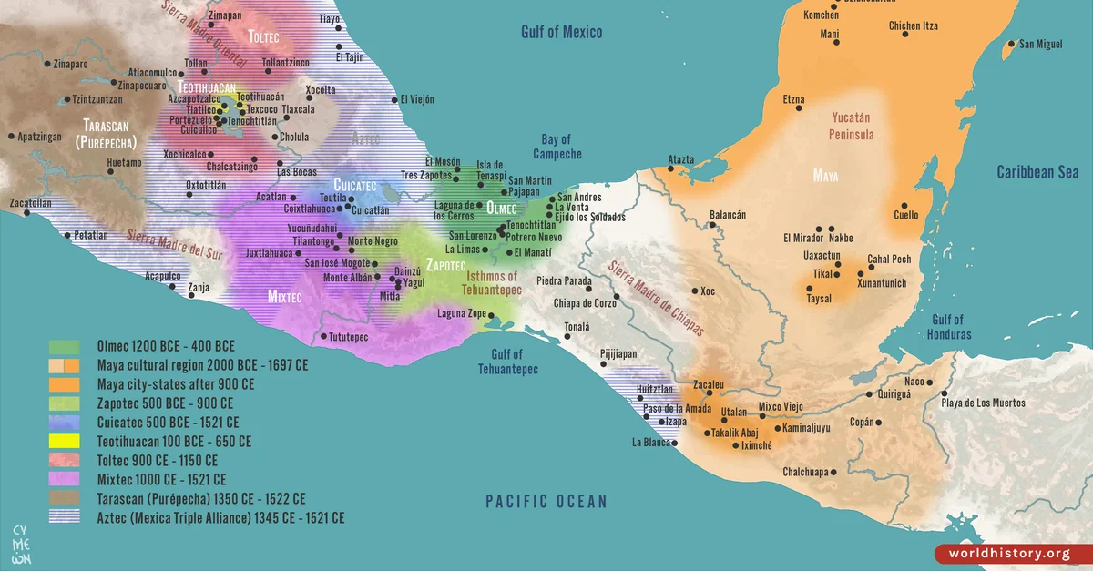 Netchev, S. (2024, October 03). Map of the Mesoamerican Civilizations. World History Encyclopedia. https://www.worldhistory.org/image/19504/map-of-the-mesoamerican-civilizations/