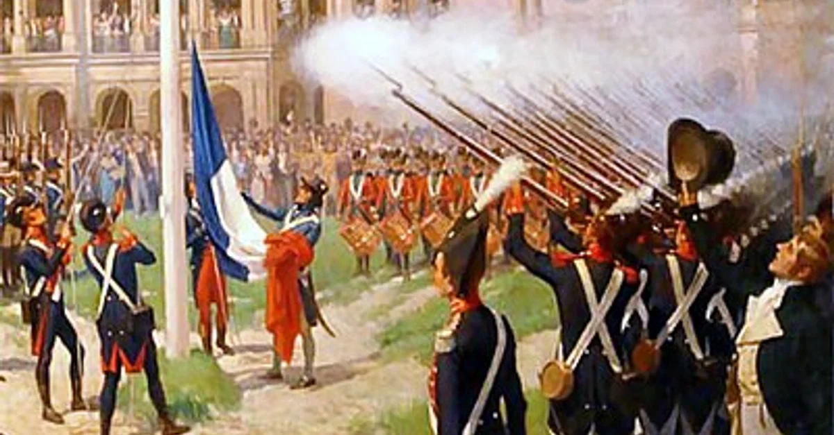 On 20 December 1803, after the Louisiana Purchase, the American flag is hoisted in New Orleans. Oil on canvas painting by Thure de Thulstrup, 1902.
