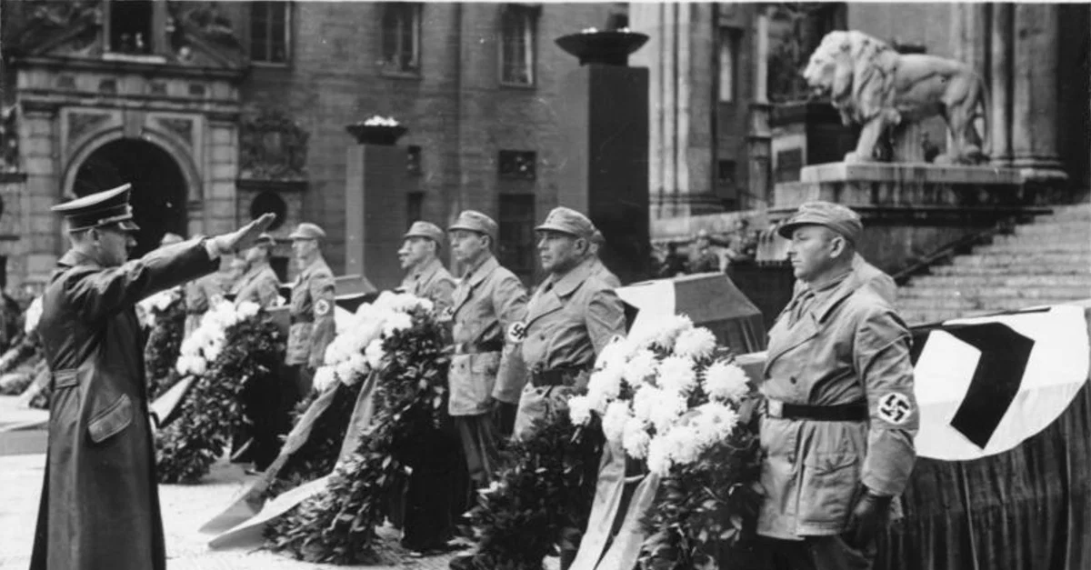 183-E12359, Bundesarchiv, Bild. "Hitler, Beer Hall Putsch Memorial." World History Encyclopedia, October 02, 2024. https://www.worldhistory.org/image/19521/hitler-beer-hall-putsch-memorial/.