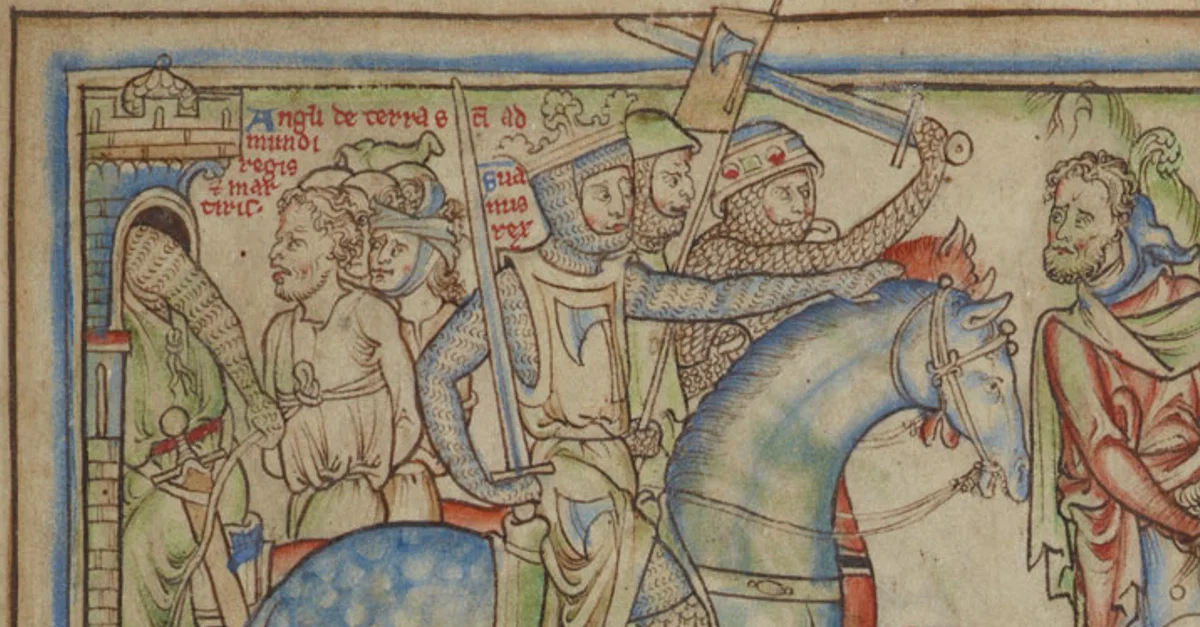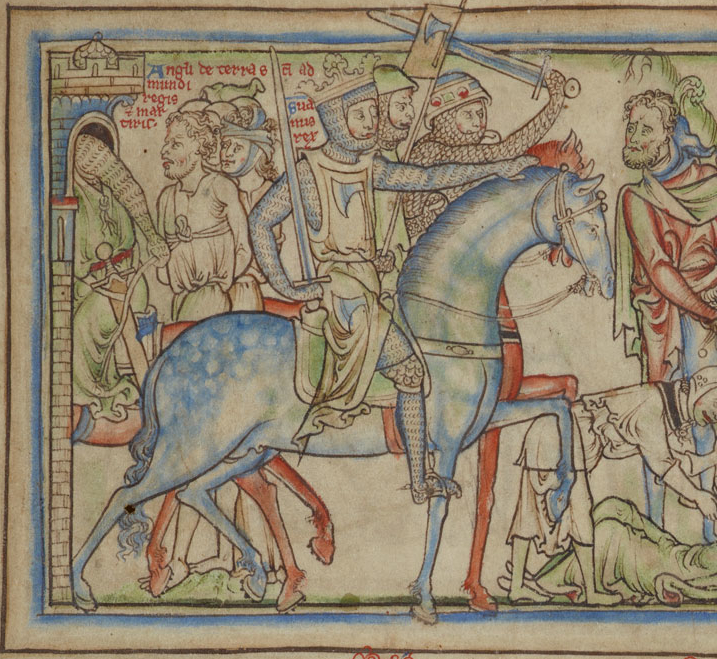Sweyn Forkbeard invades England, illustration from fol 4r of The Life of King Edward the Confessor (manuscript Ee.3.59), 13th century.