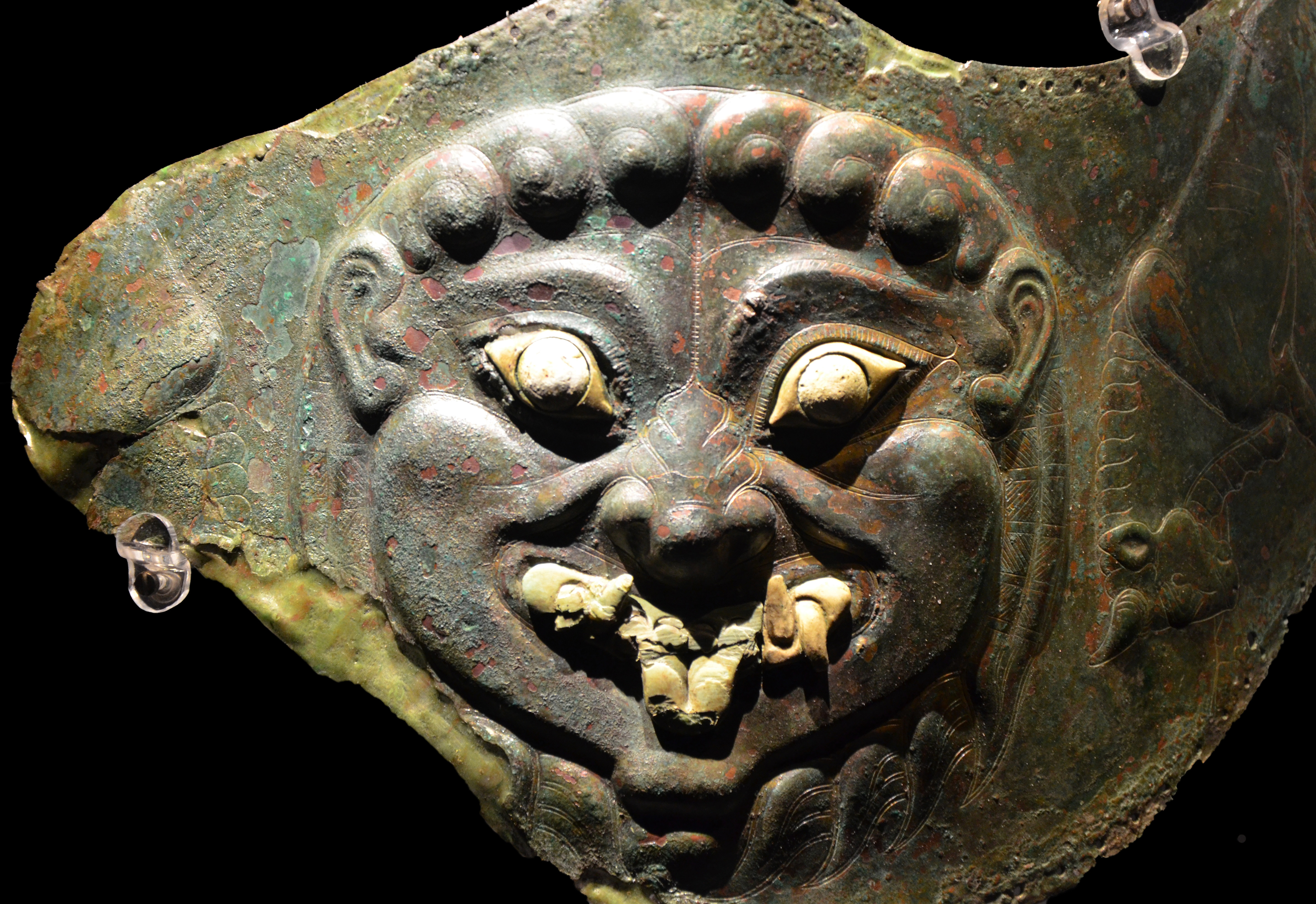 Bronze and ivory horse breastplate with the Gorgon's head. From Ruvo, Italy, dated to the end of the 6th century BCE.