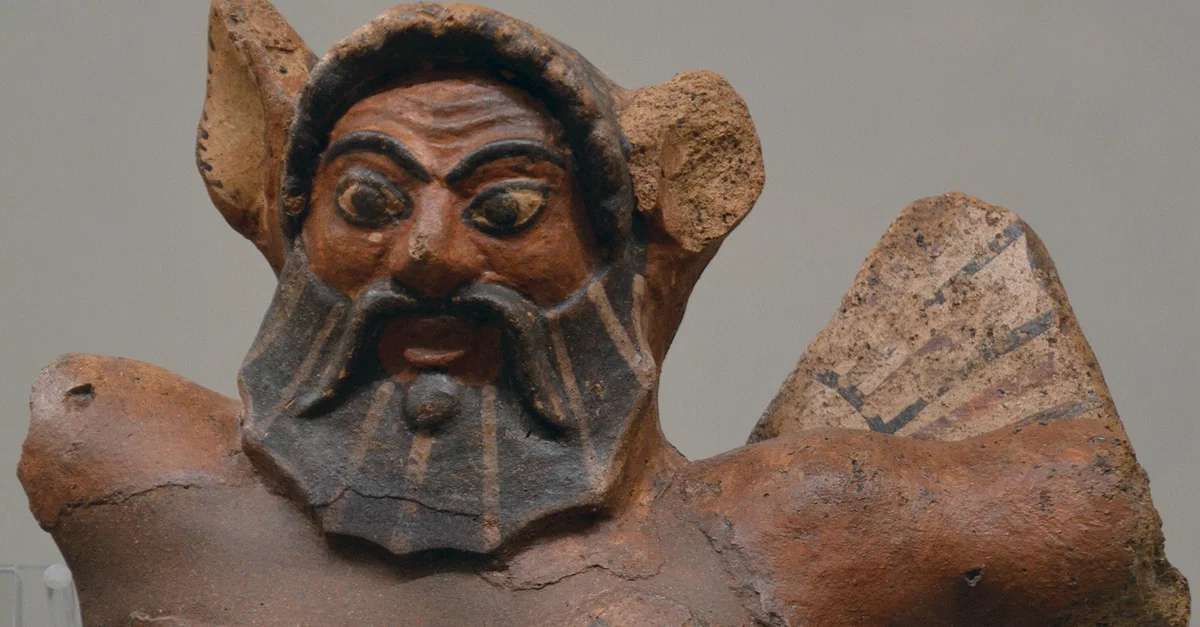 Terracotta acroterion statue of Typhon, the "Father of All Monsters". From Gabii, Italy, 6th century BCE.