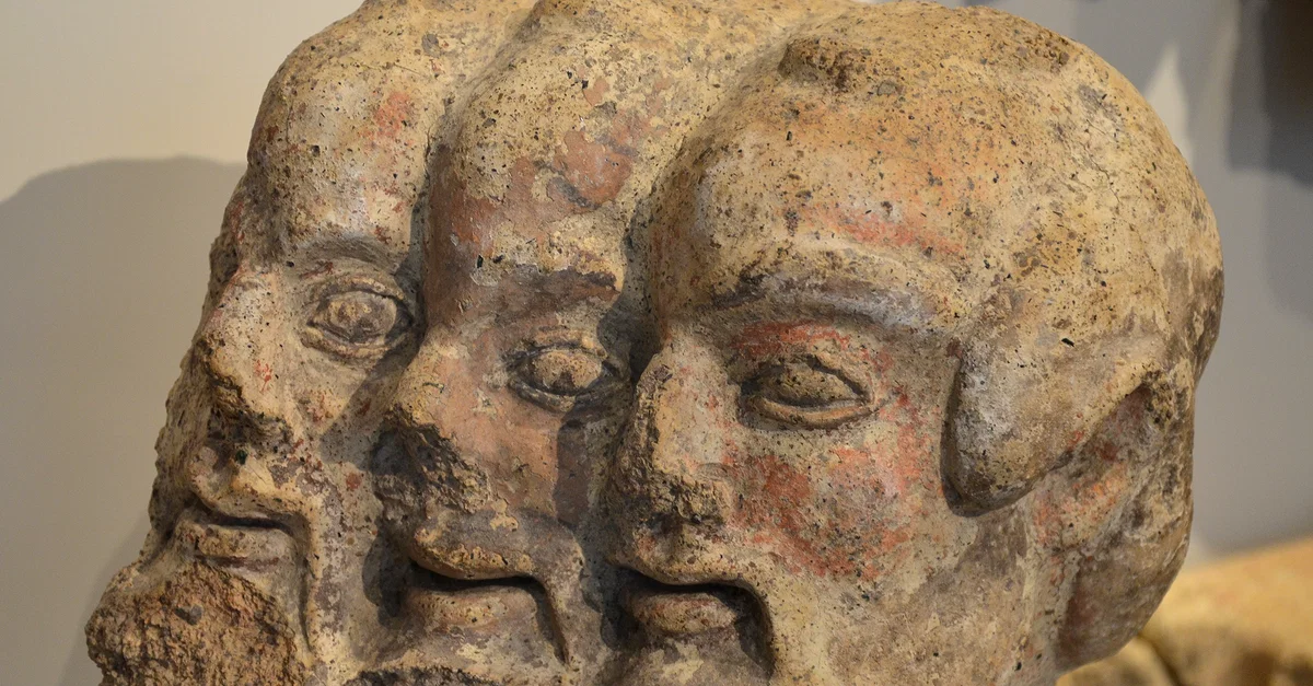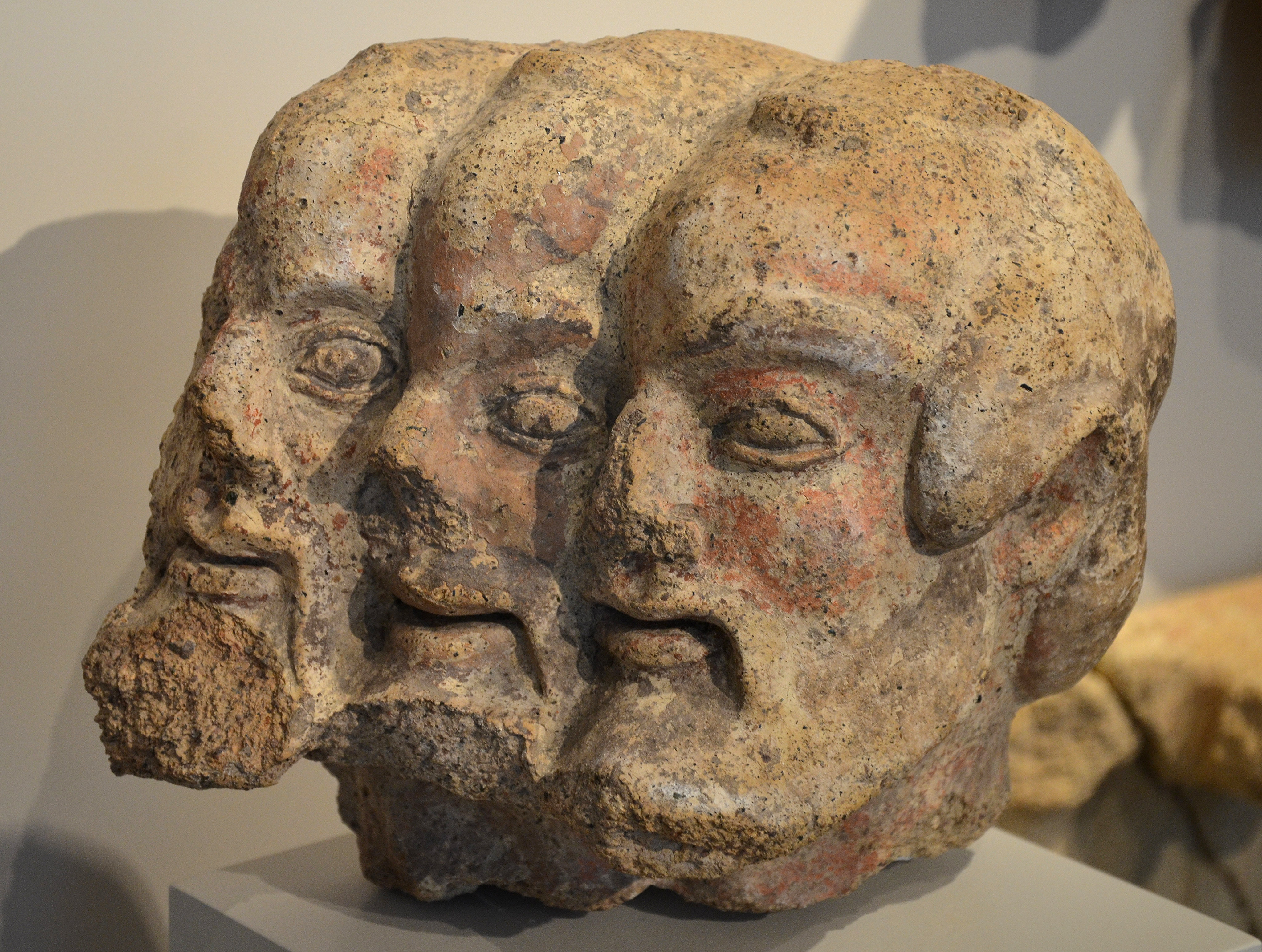 Etruscan three-headed Demon from a pediment relief found in Orvieto (Italy). Dated to around 480 BCE.