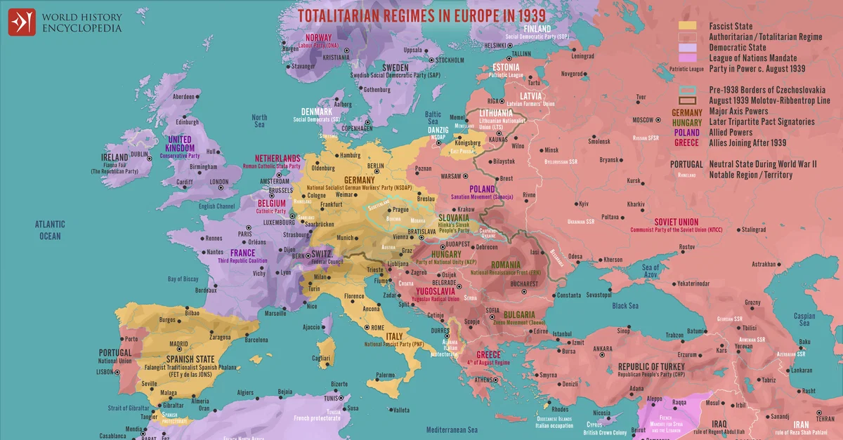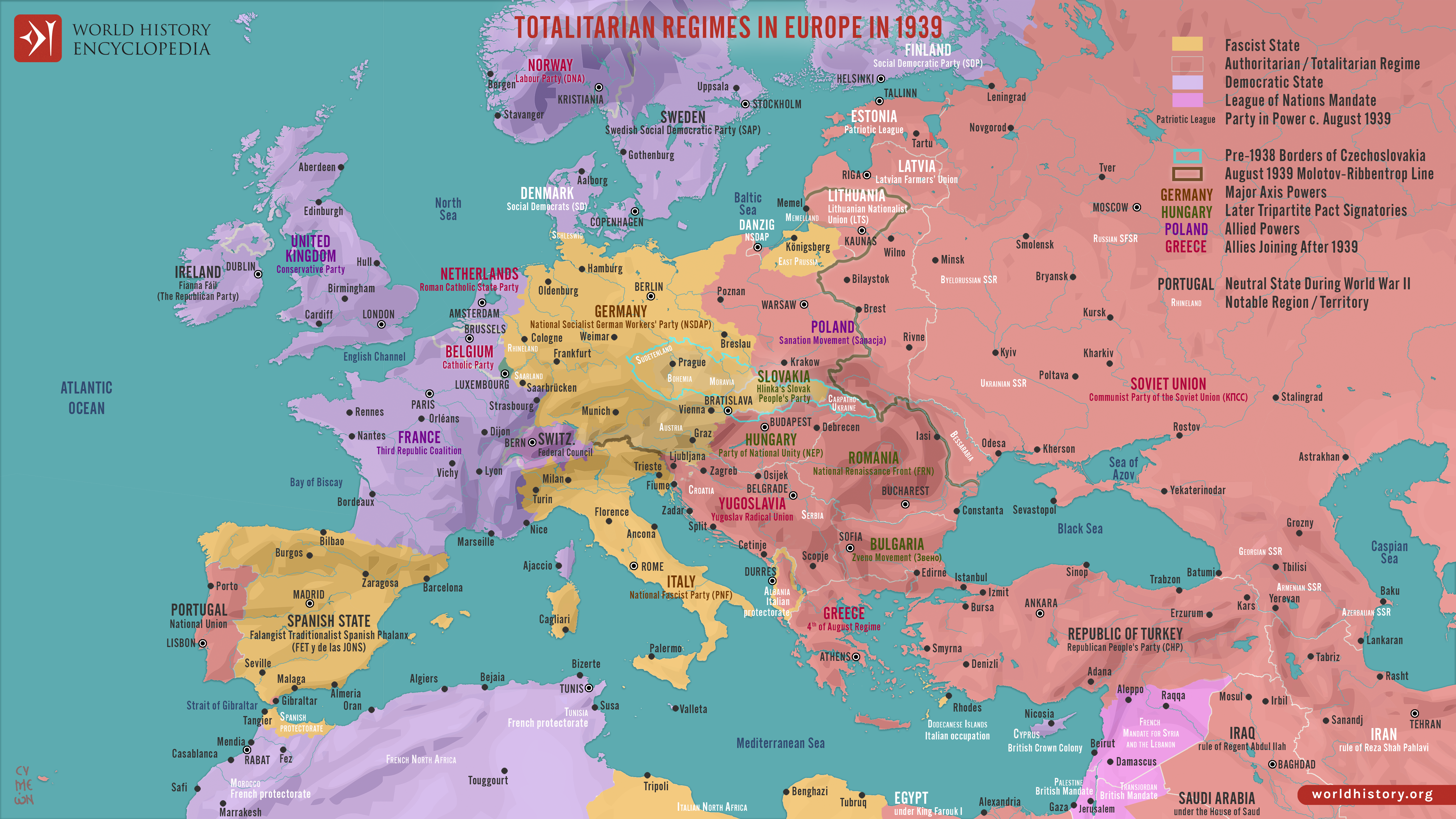 Netchev, S. (2024, October 10). Totalitarian Regimes in Europe in 1939. World History Encyclopedia. https://www.worldhistory.org/image/19550/totalitarian-regimes-in-europe-in-1939/