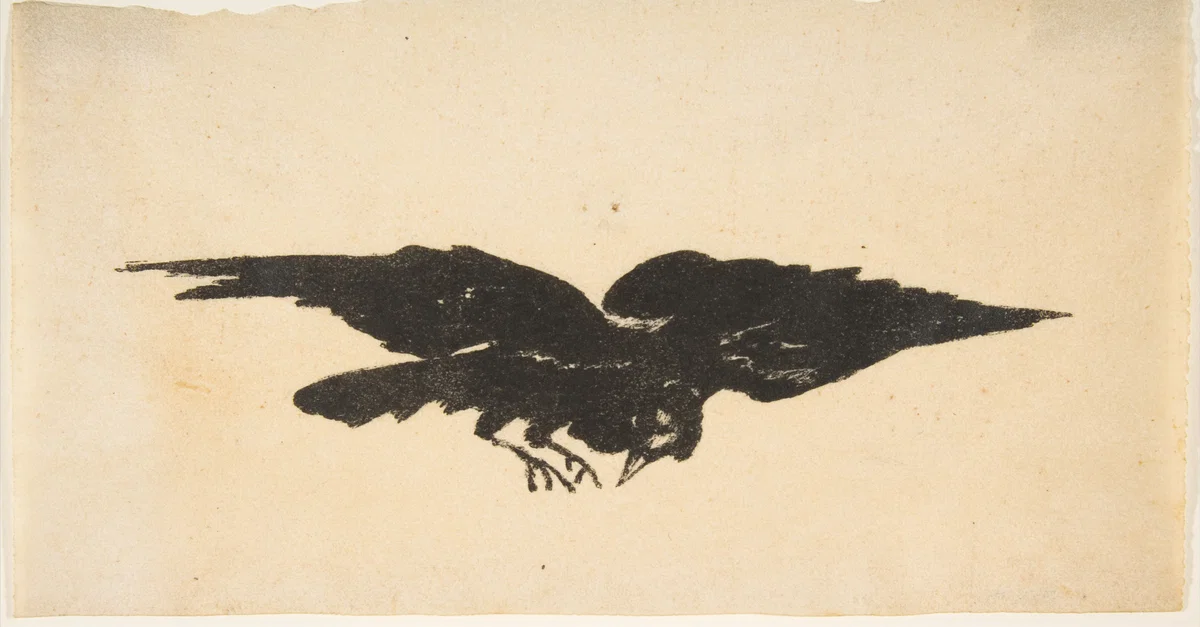The Flying Raven, Ex Libris for The Raven by Edgar Allan Poe, lithograph on simili-parchment by Edouard Manet, 1875.