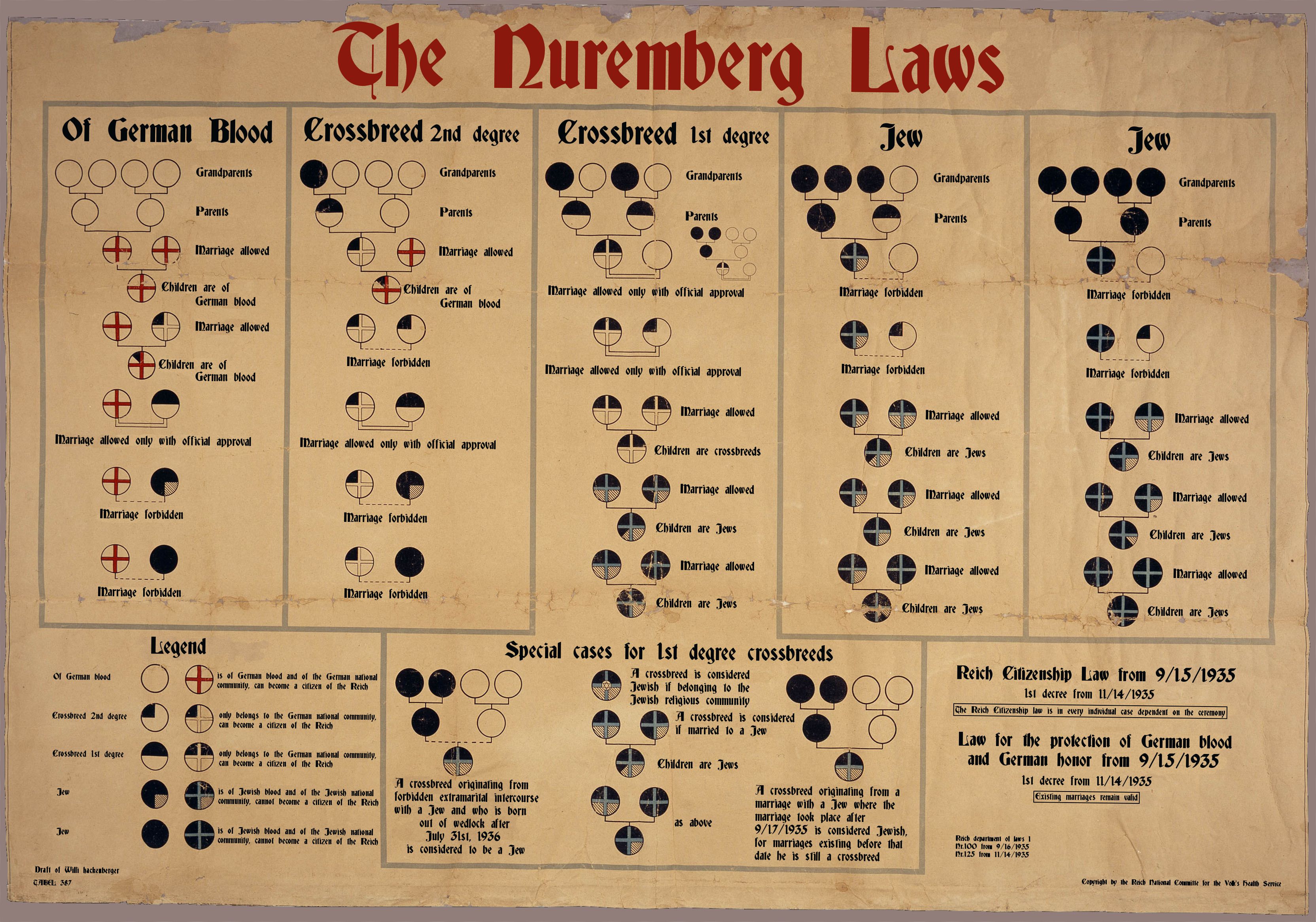 A chart showing the classification of Jewish people and marriage restrictions in Nazi Germany after the Nuremberg Laws were passed in September 1935.