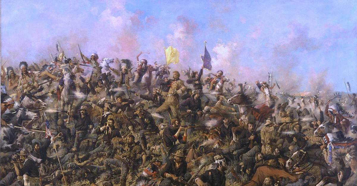 Custer's Last Stand at the Battle of the Little Bighorn in June 1876, oil on canvas painting by Edgar Samuel Paxson 1899.