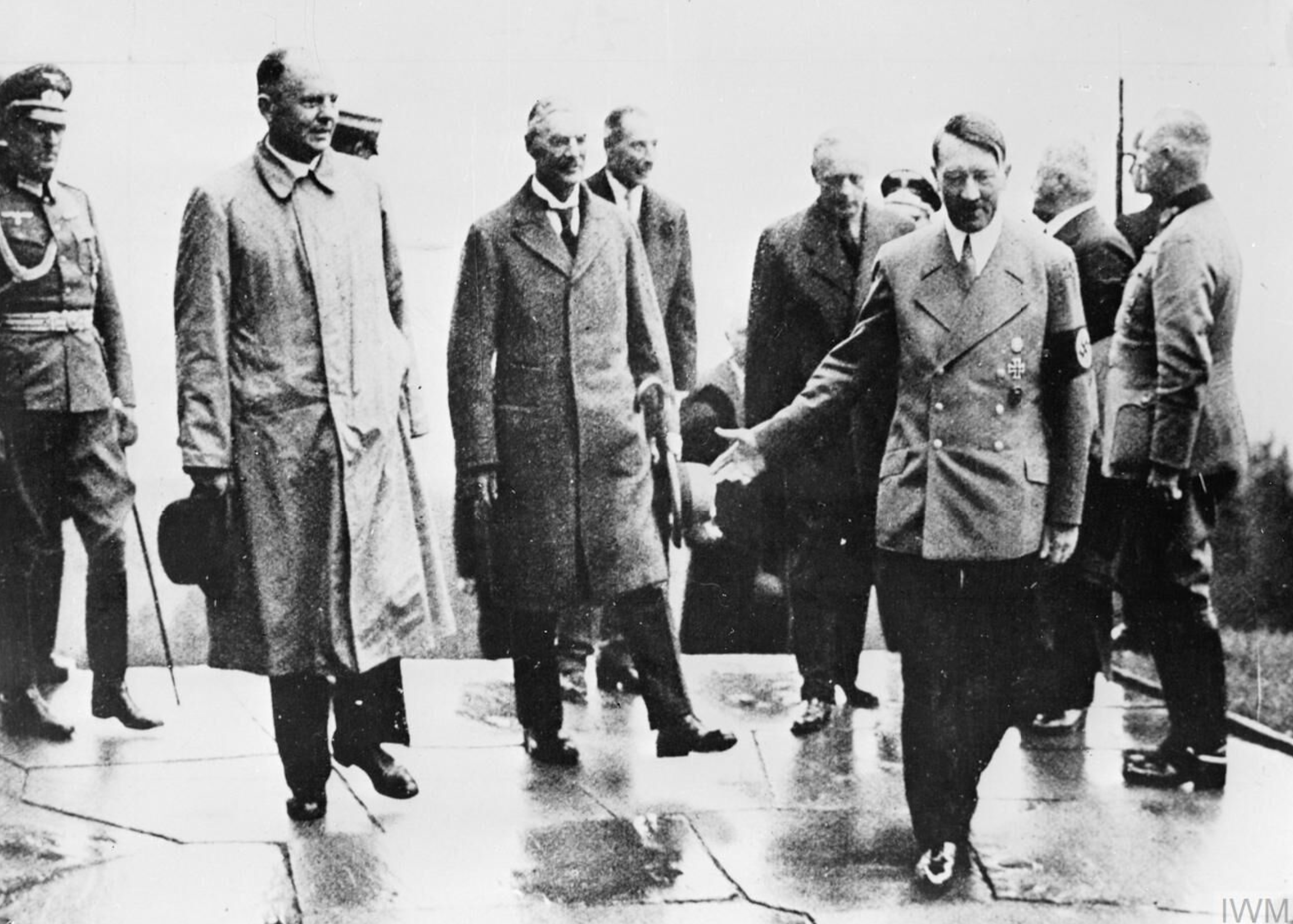 A photograph showing the British Prime Minister Neville Chamberlain (1869-1940) and Adolf Hitler (1889-1945), the leader of Nazi Germany at Berchtesgaden, Bavaria on 15 September 1938 during the Sudentenland crisis which ended with Hitler's occupation of Czechoslovakia. (Imperial War Museums)