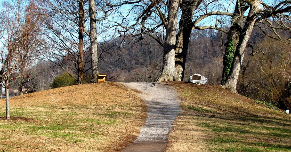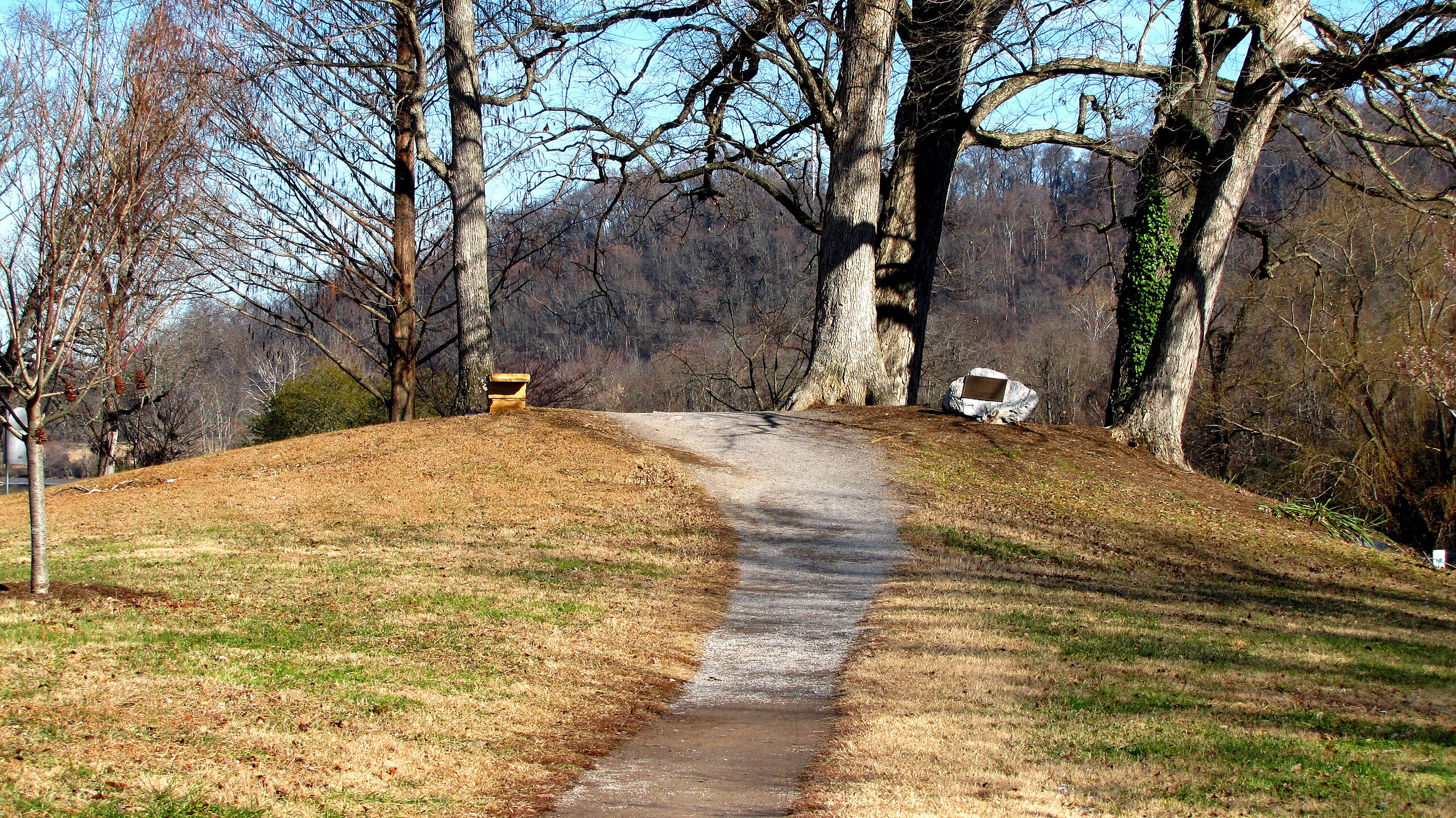 Native American burial mound, associated with the Cherokee nation, in the Cherokee Boulevard median of Knoxville, Tennessee, USA.
