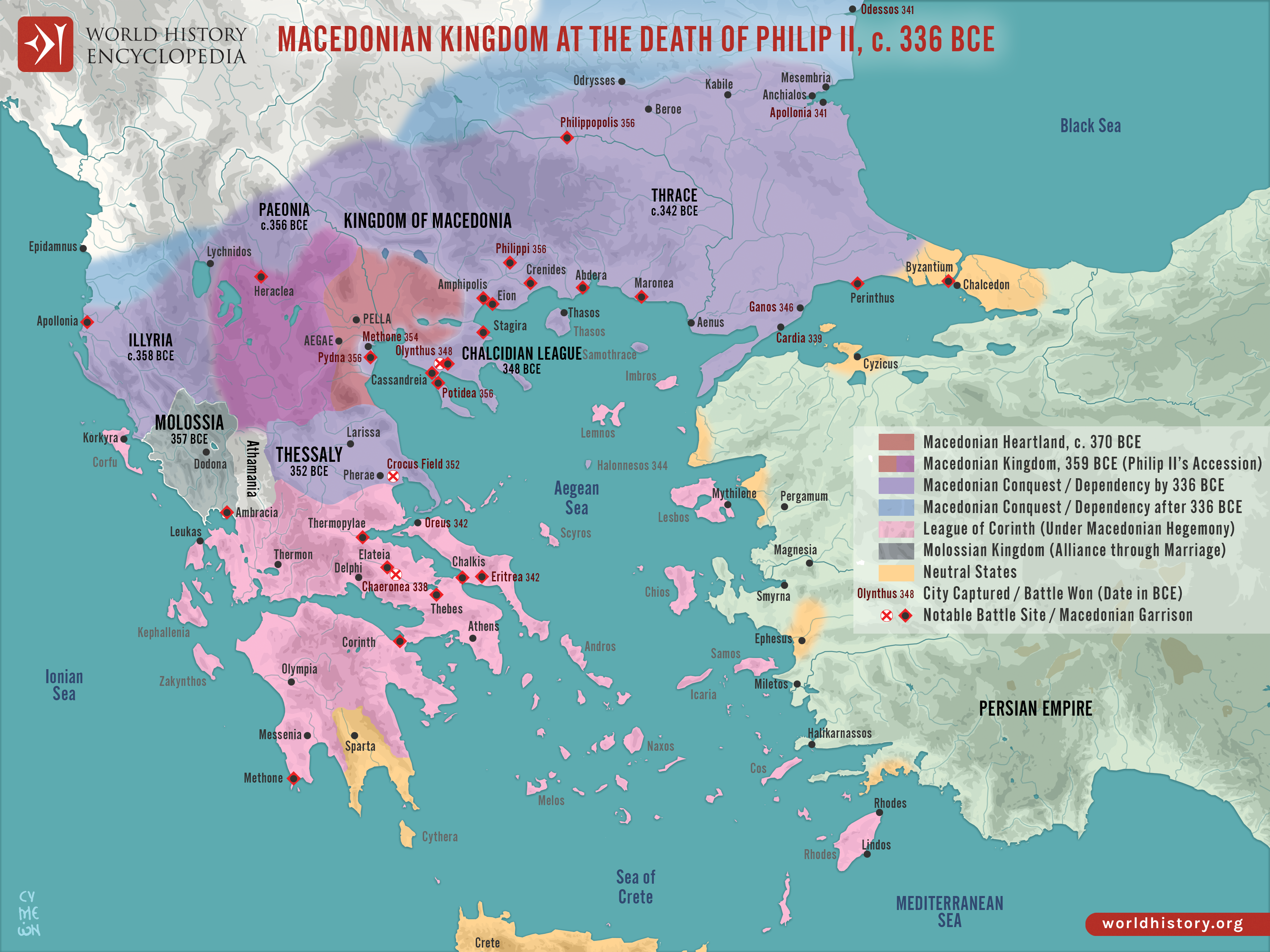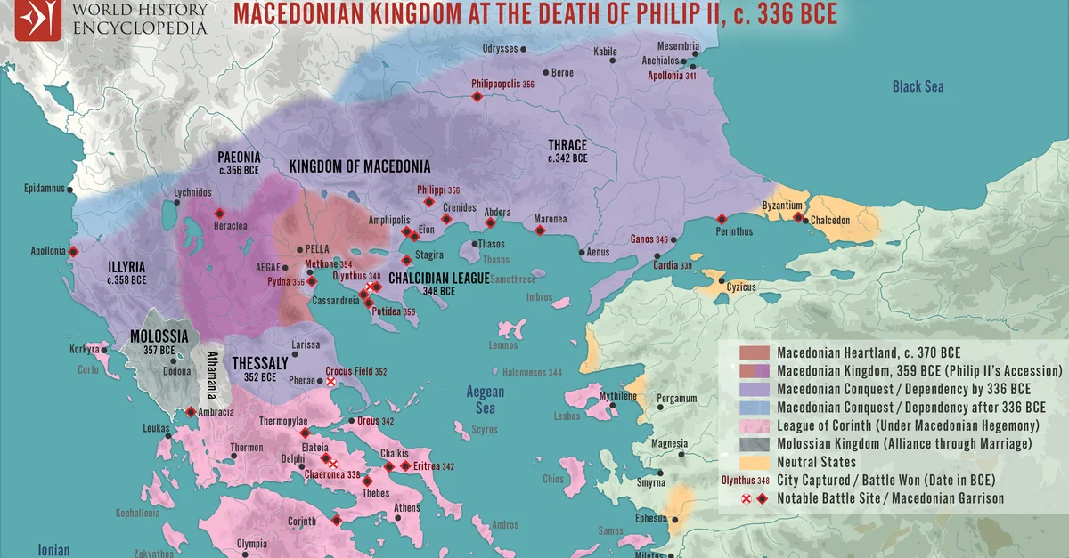 Netchev, S. (2024, November 21). The Macedonian Kingdom at Philip II's Death, c. 336 BCE. World History Encyclopedia. https://www.worldhistory.org/image/19668/the-macedonian-kingdom-at-philip-iis-death-c-336-b/