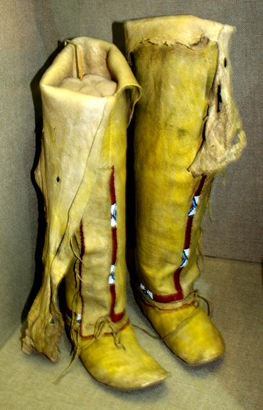 Southern Arapaho woman's beaded buckskin leggings and attached moccasins, c. 1910.