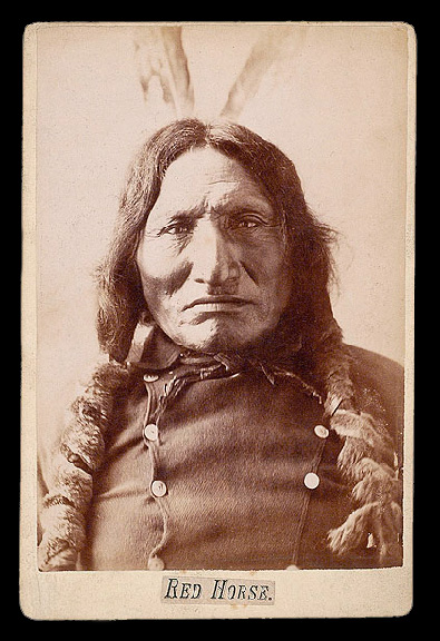 Red Horse (l. 1822-1907), Miniconjou Lakota Sioux chief. Commercial cabinet card published by D. F. Barry (1854-1934). Red Horse's account of the Battle of the Little Bighorn and his accompanying ledger art are among the finest depictions of the battle extant.