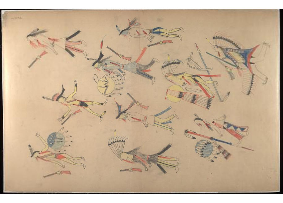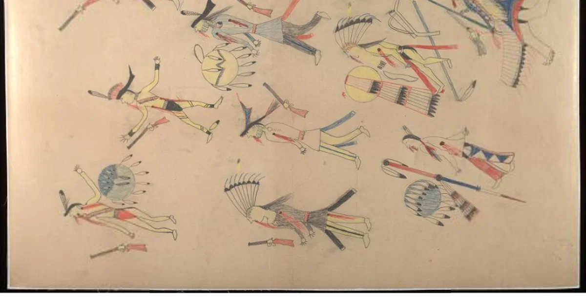 Pictographic ledger art of the Battle of the Little Bighorn by the Lakota Chief Red Horse, 1881.