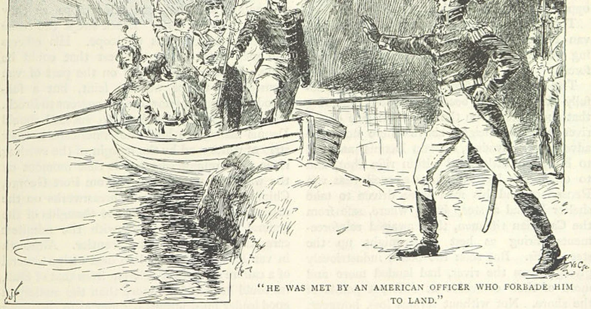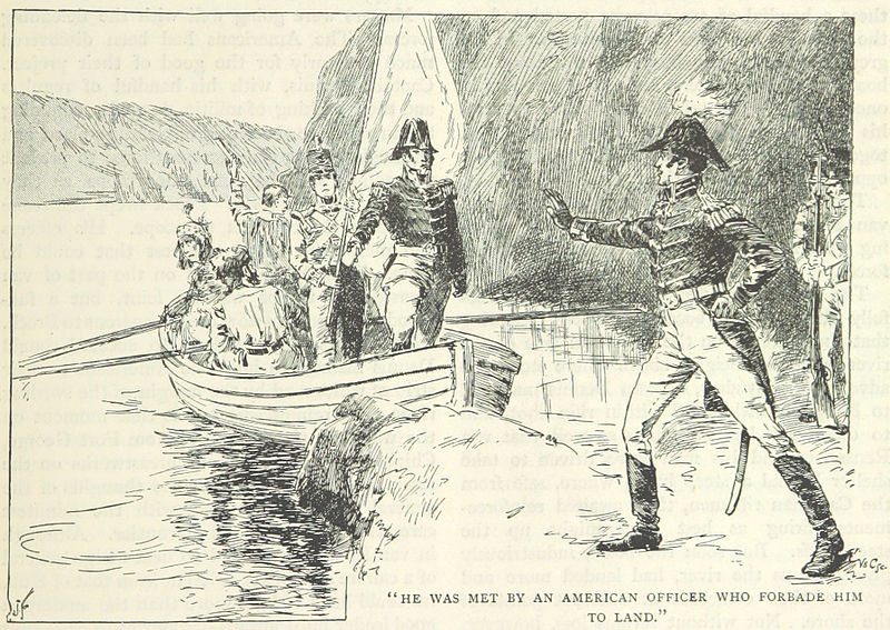 British Major Thomas Evans (in the boat) is prevented from conducting a prisoner exchange with the Americans, who told him they would be unable to conduct such an exchange until the 'day after tomorrow'. This is what tipped Evans off that the Americans were preparing to launch an attack that would become the Battle of Queenston Heights.