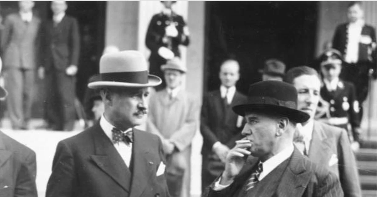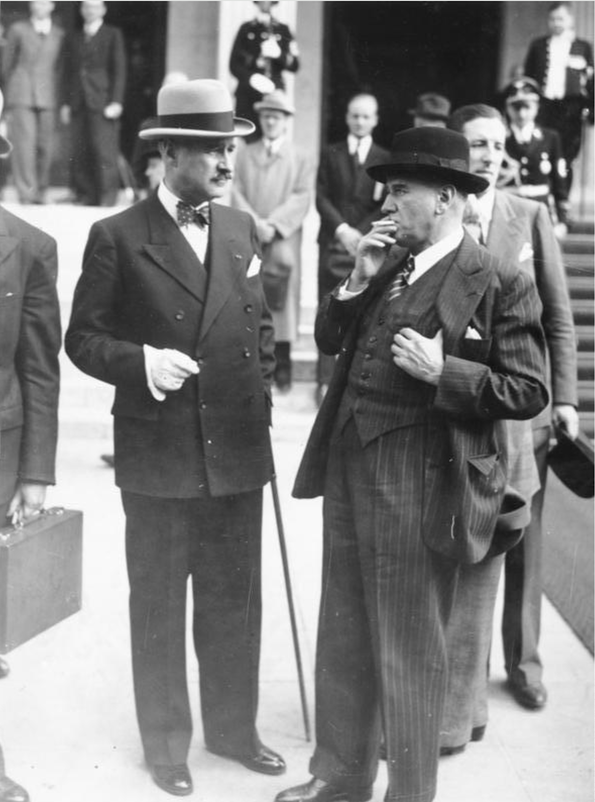 A 1938 photograph after the Munich Agreement conference showing France's Prime Minister Edouard Daladier (1884-1970) on the left and the French ambassador to Germany André François-Poncet (1887-1978) on the right. (German Federal Archives)