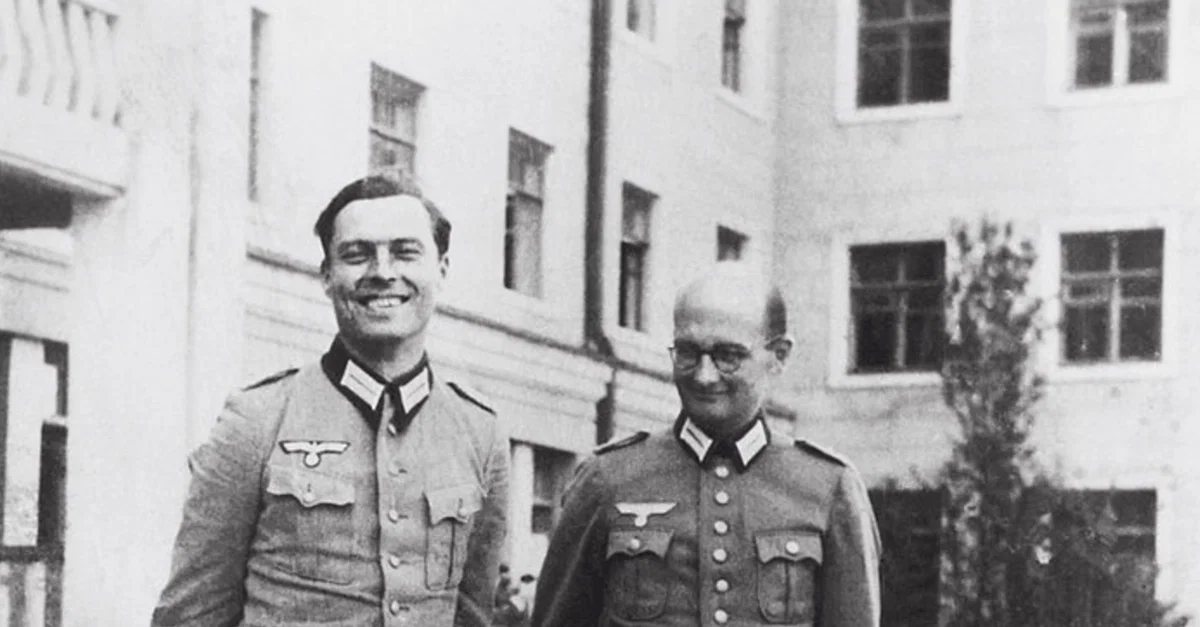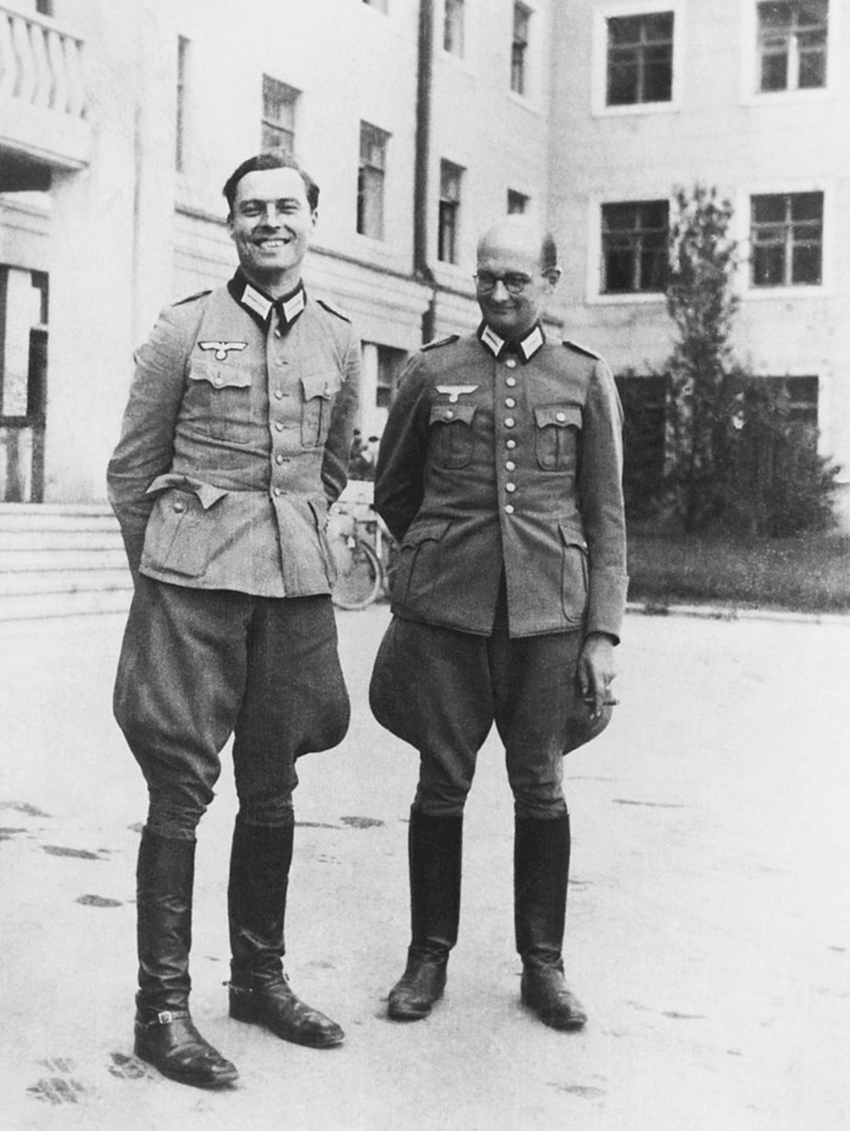 A photograph of Claus von Stauffenberg (1907-44) and Albrecht Mertz von Quirnheim, conspirators in the 1944 plot to assassinate Hitler, the leader of Nazi Germany. Stauffenberg placed the bomb in Hitler's command centre but the Führer survived.