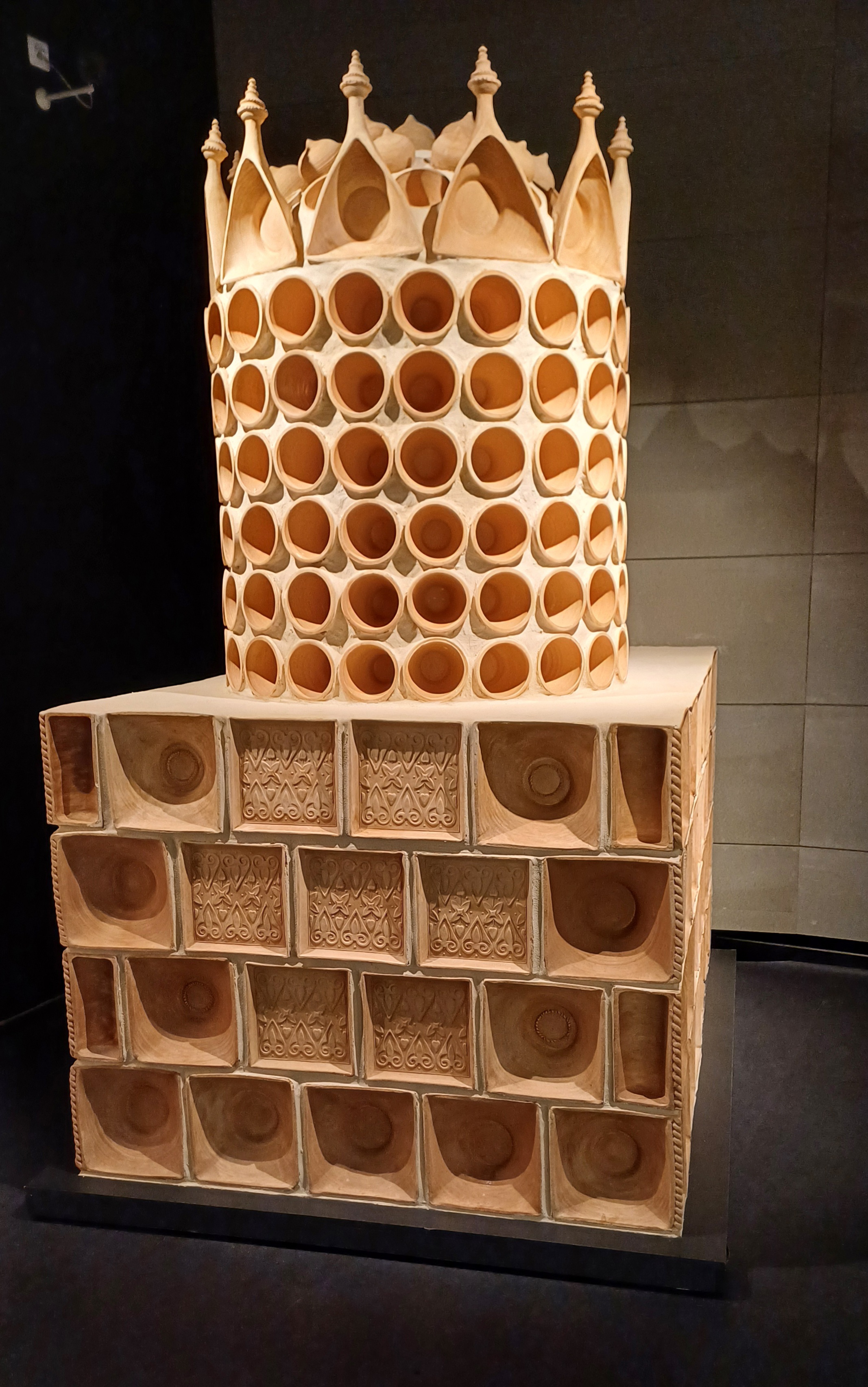 Replica of a 16th-century earthenware stove with decorative tiles from around Šenkvice.