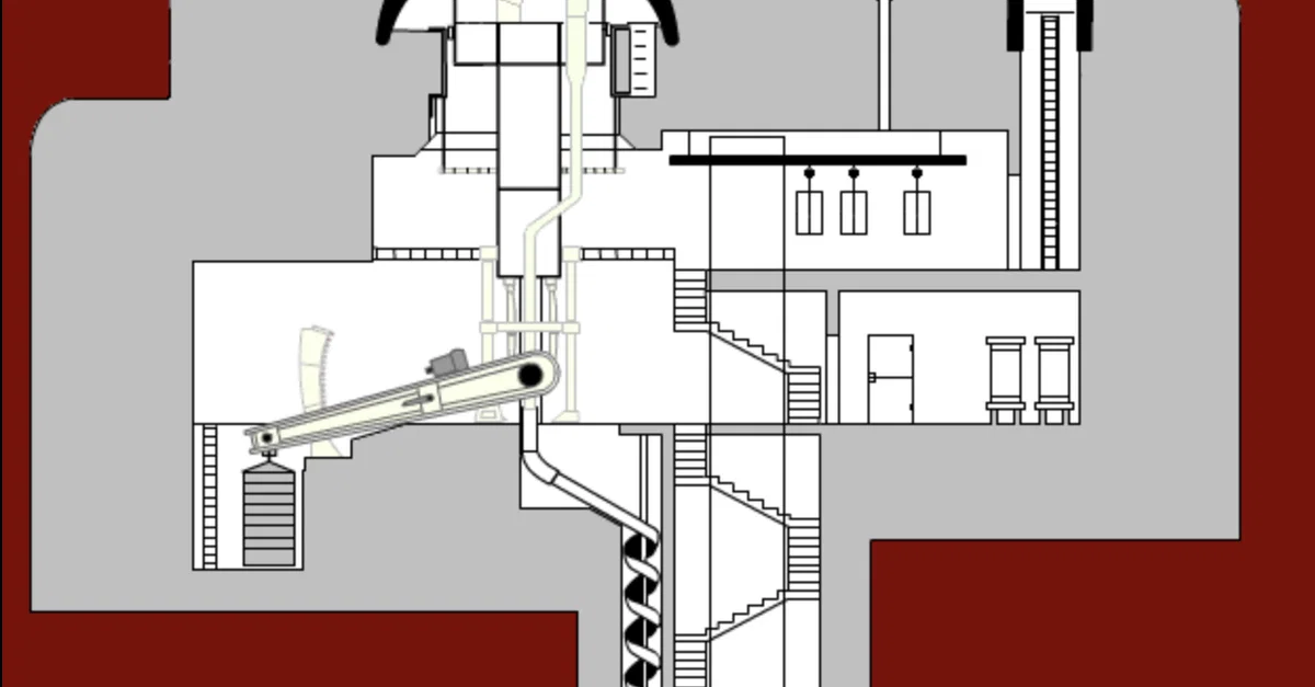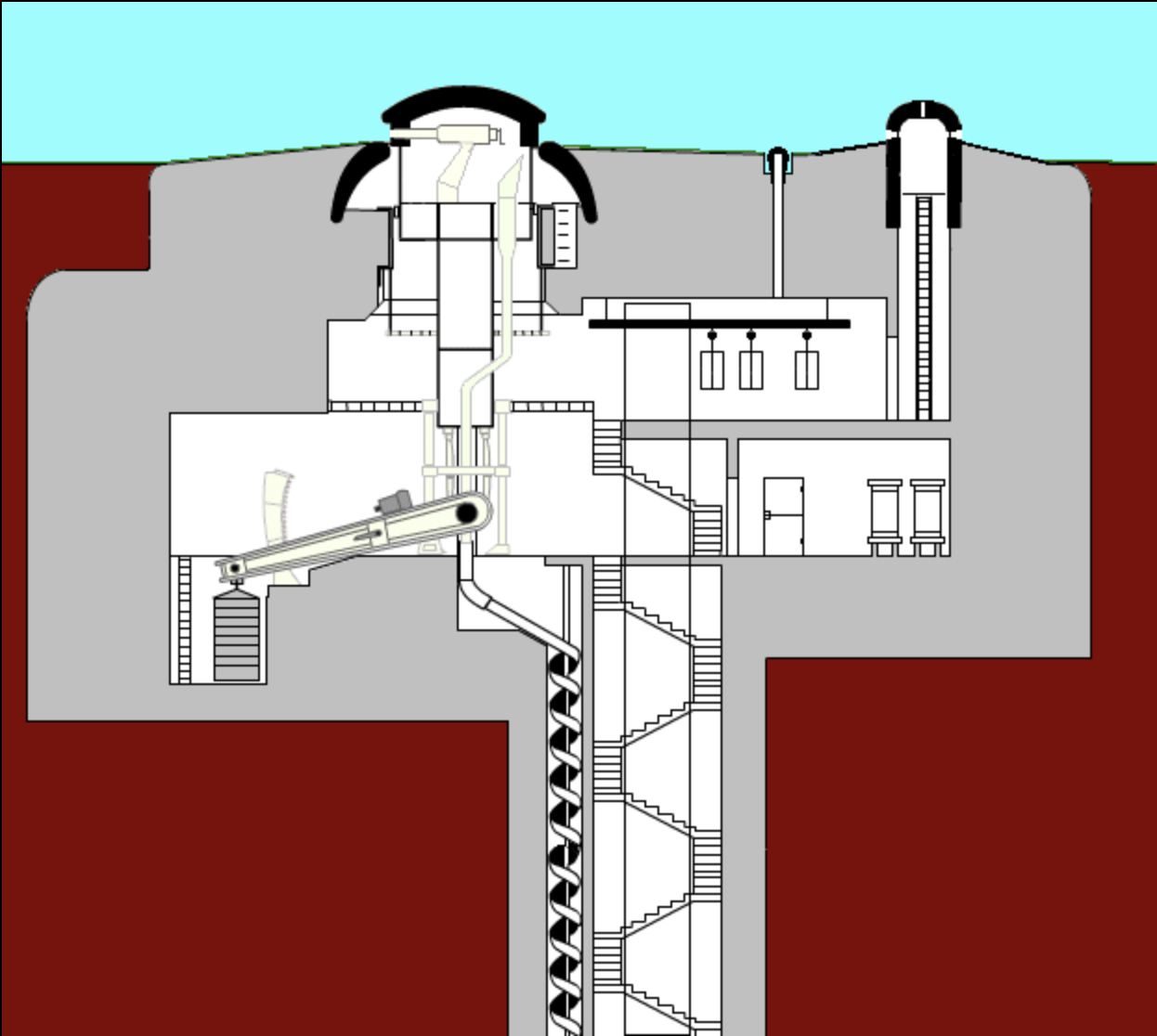 A diagram of a retracting gun turret of the Maginot Line, France's Second Woorld War (1939-45) defences along the border with Germany and Switzerland.