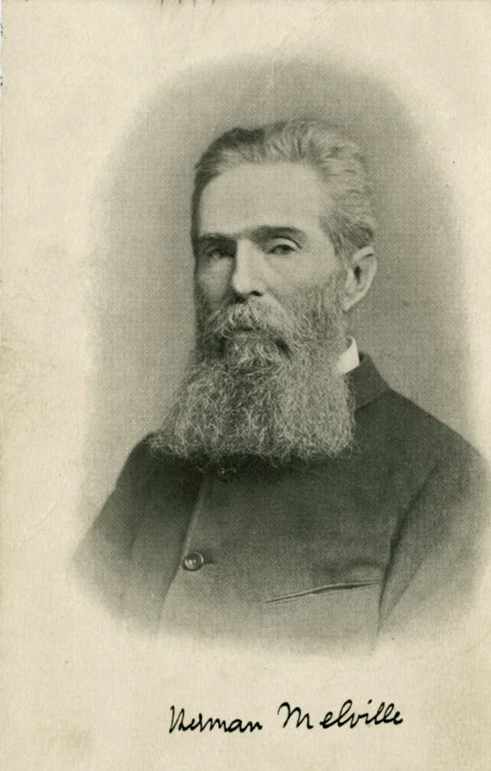 An 1885 signed portrait postcard of the US author Herman Melville (1819 – 1891). By George G. Rockwood.
