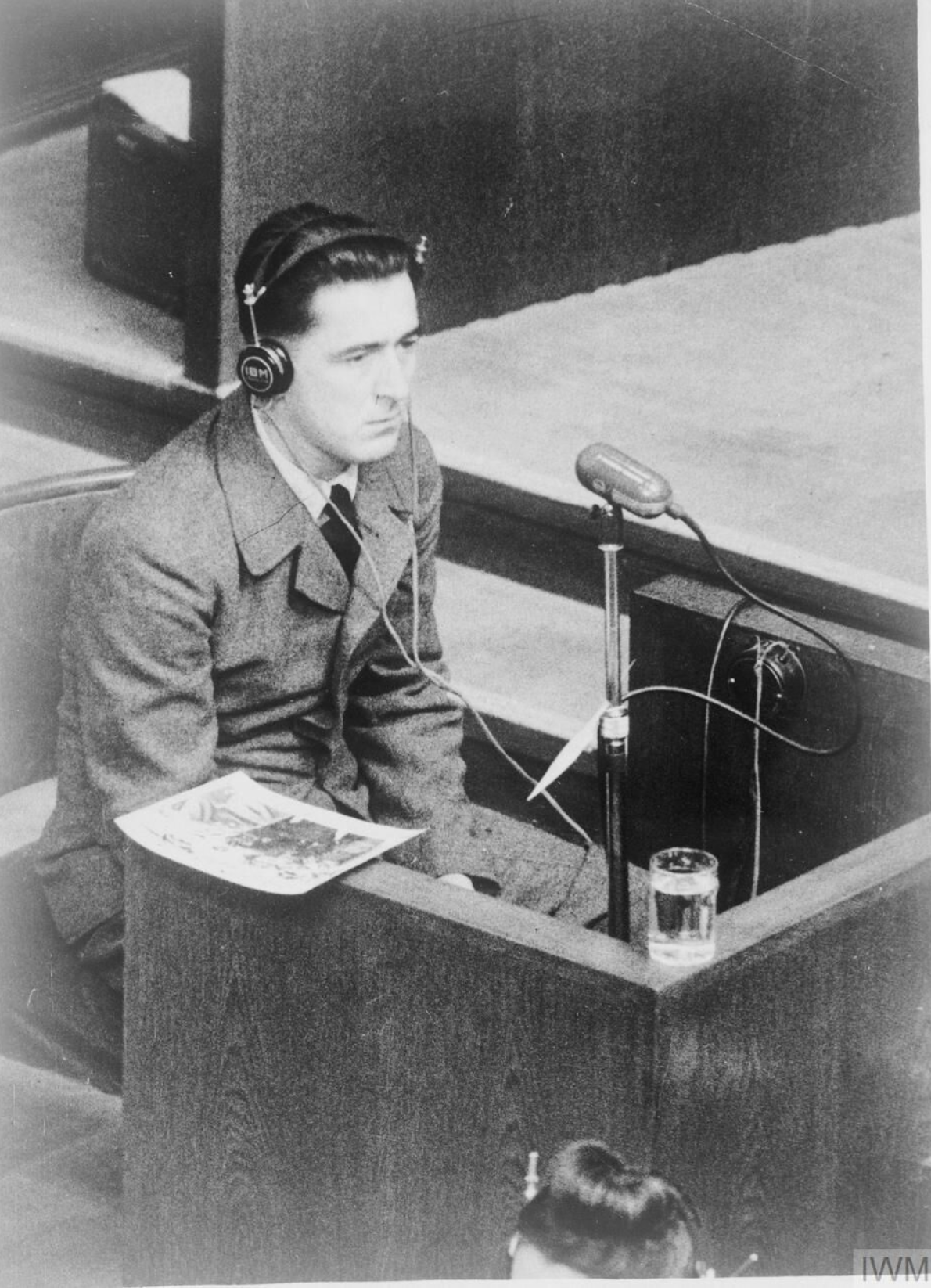 A photograph of Alois Hoellriegl giving evidence of Nazi atrocities at the Nuremberg Trials (1945-6). Hoellriegl was a guard at the Mauthausen concentration camp. (Imperial War Museums)