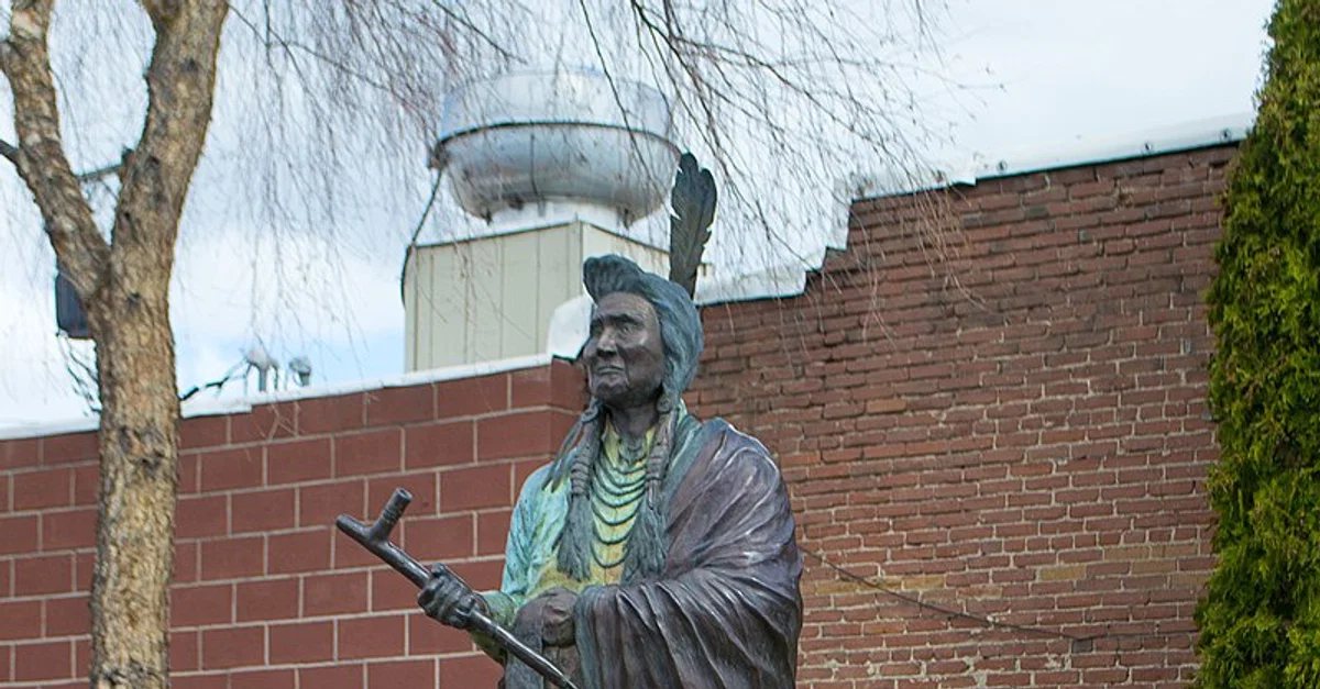 A statue of young Chief Joseph in Enterprise, Oregon.