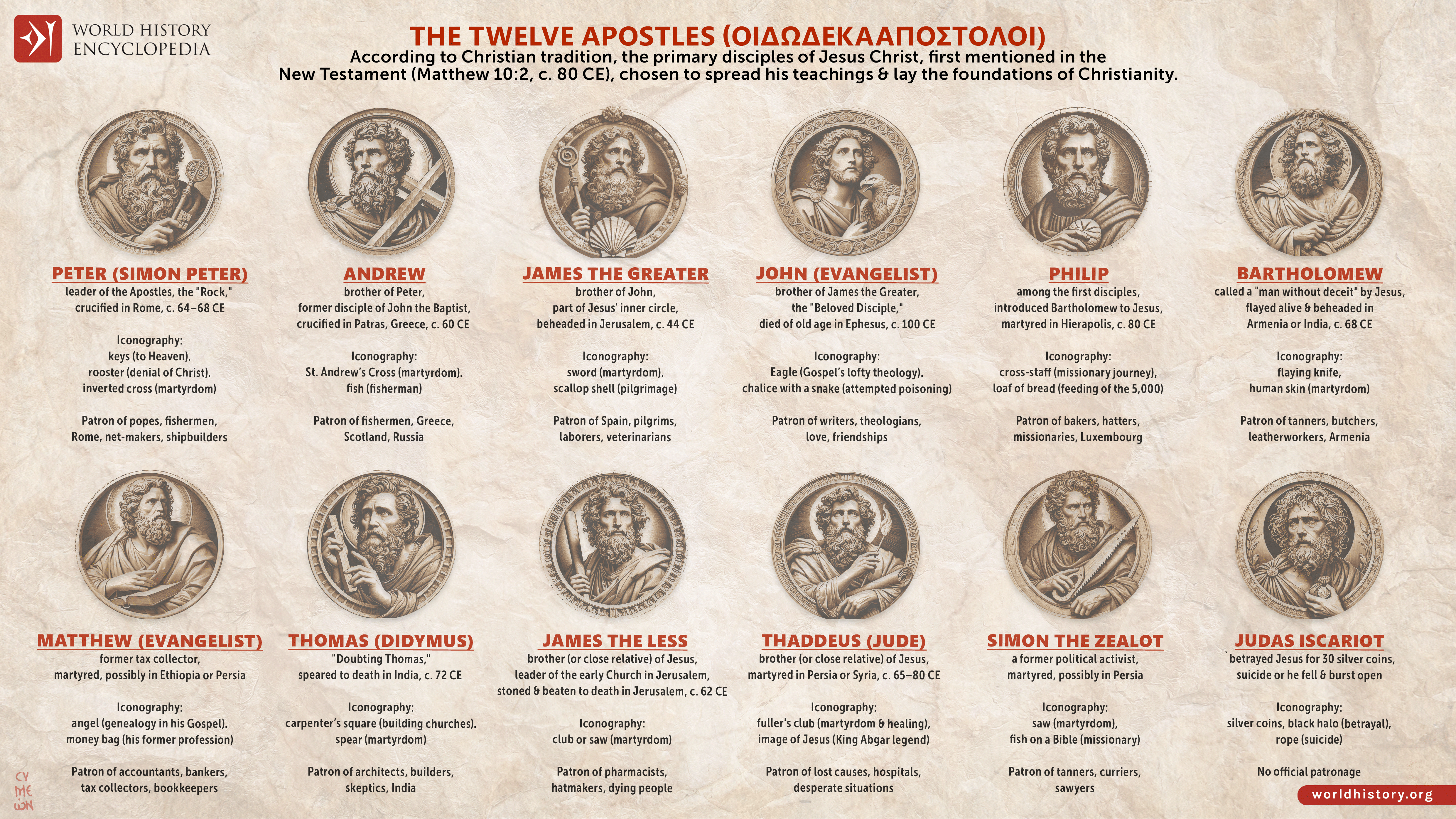 Netchev, S. (2025, February 12). The Twelve Apostles of Christianity. World History Encyclopedia. https://www.worldhistory.org/image/20015/the-twelve-apostles-of-christianity/