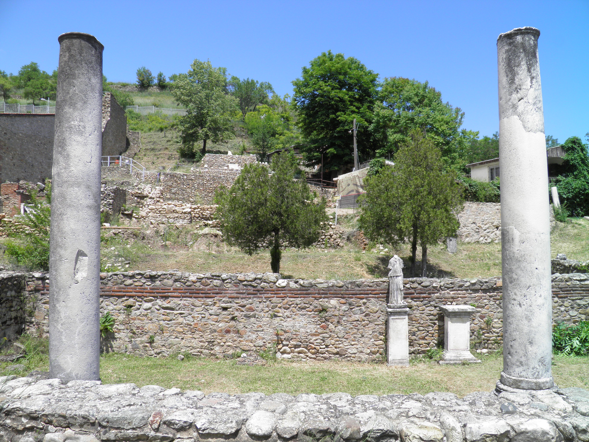 Remains of the magistrate house, including a statue of Nemesis, at Herakleia Lynkestis, Macedonia.