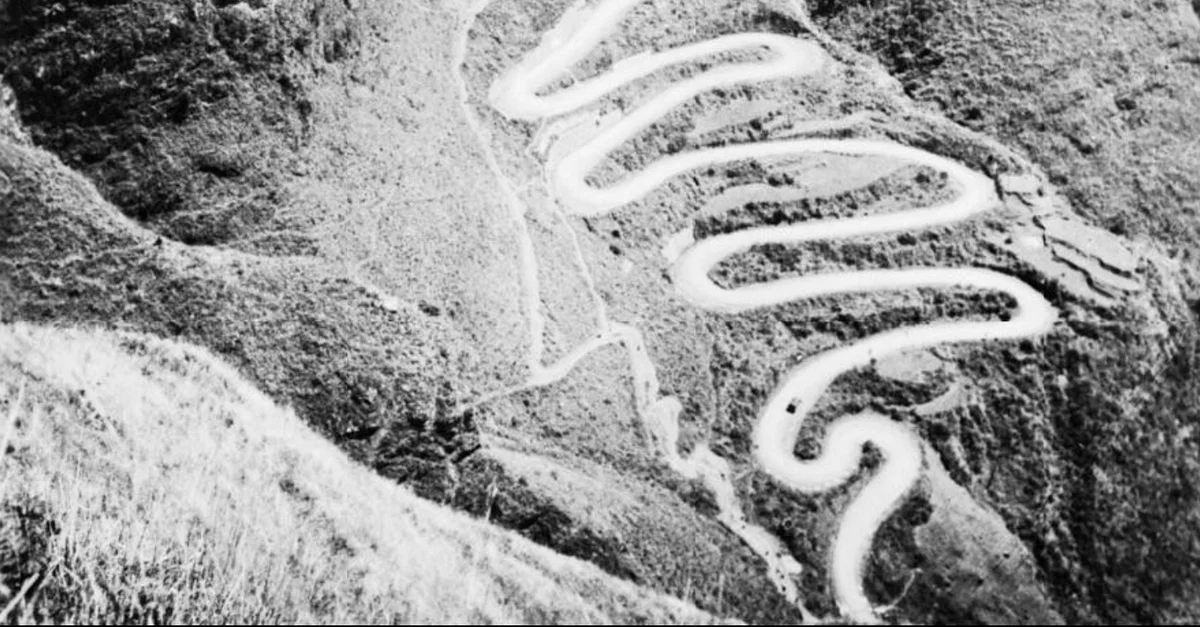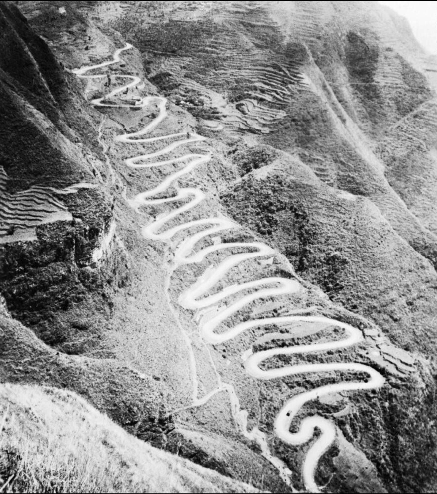 An aerial view of the Ledo Road in Burma (Myanmar), a land connection between India and China used by Allied troops during the Second World War (1939-45) following the closure of the more famous Burma Road. The road was in use from February 1944 to August 1945.