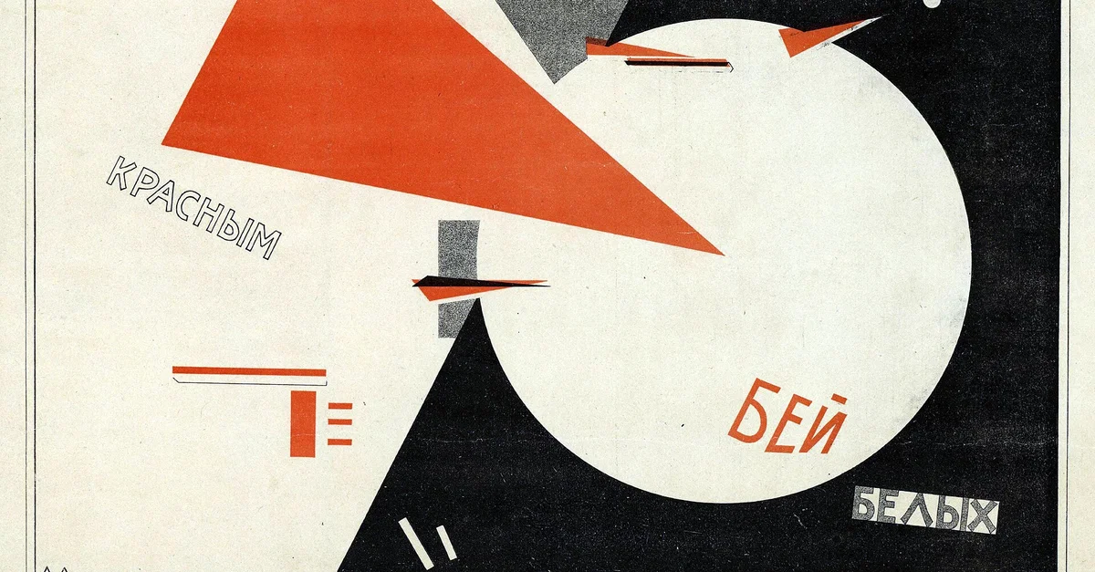Beat the Whites with the Red Wedge, a lithograph propaganda poster by Soviet artist El Lissitzky, 1920. In the poster, the red triangle represents the Bolsheviks and the Red Army penetrating and defeating the White movement, their opposition during the Russian Civil War (1917-1922).
