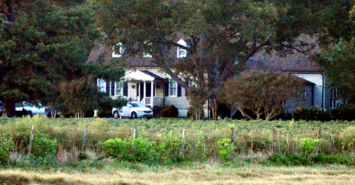 Front of the Belmont Estate House, located on Buckhorn Quarter Road east of Capron in Southampton County, Virginia, United States. Built in 1790, it was the site of the concluding episode of Nat Turner's Rebellion on 23 August 1831. It is listed on the National Register of Historic Places. Photograph by Nyttend, 2017.