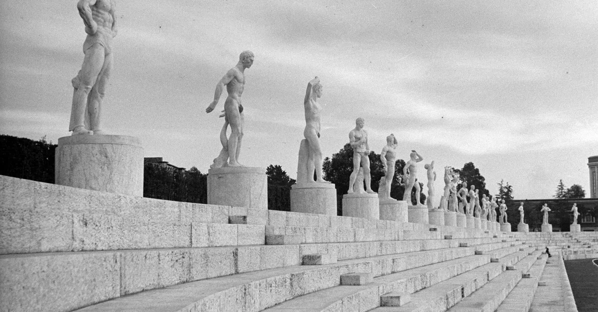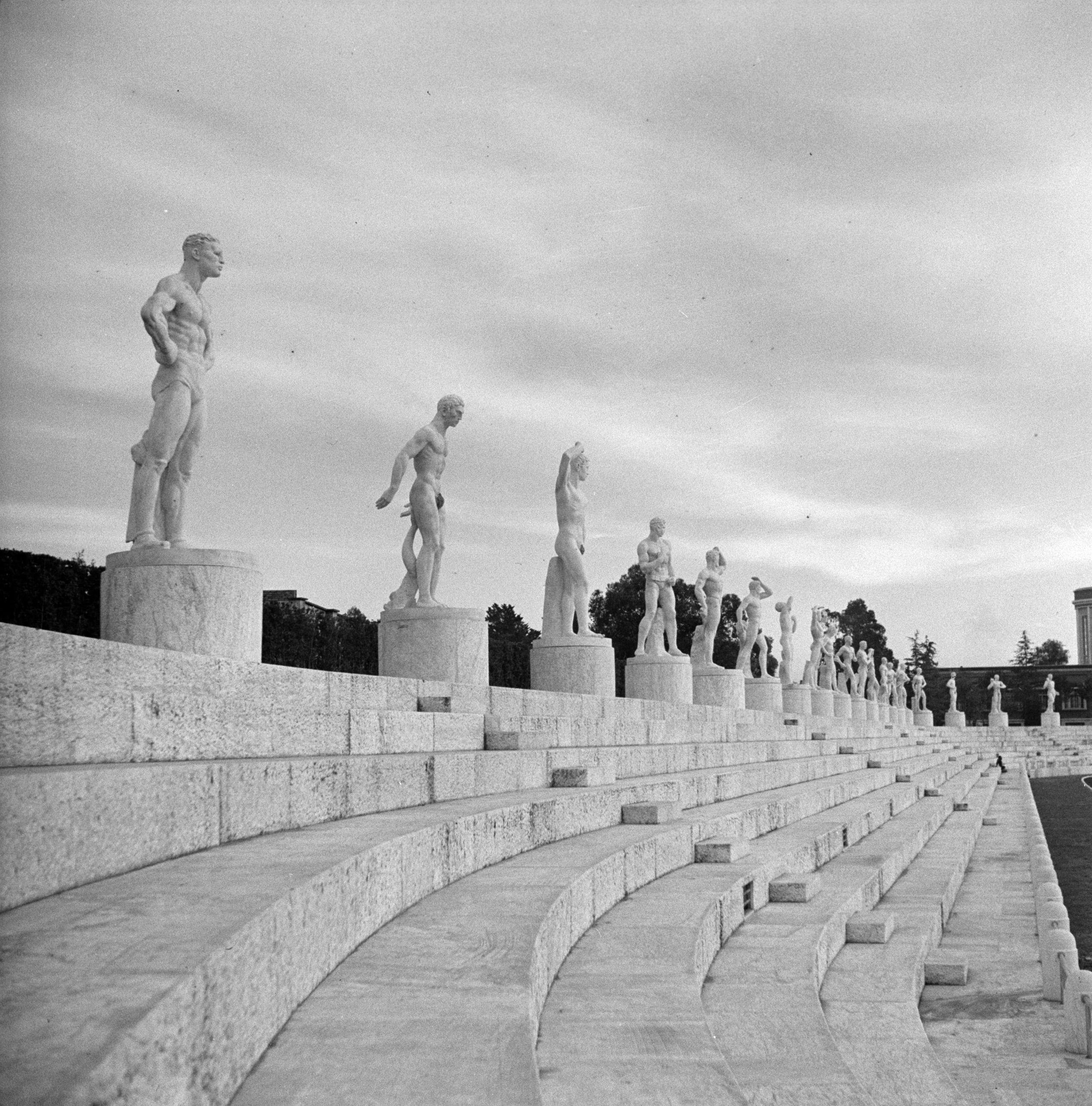 A 1937 photograph of the Foro Italico sports complex in Rome, initially called the 'Foro Mussolini' after Benito Mussolini (1883-1945), the leader of Fascist Italy. It was designed in 1927 by architect Enrico Del Debbio, and then inaugurated in 1932. The facility is decorated with statues symbolising various sporting activities. (Dutch National Archives)