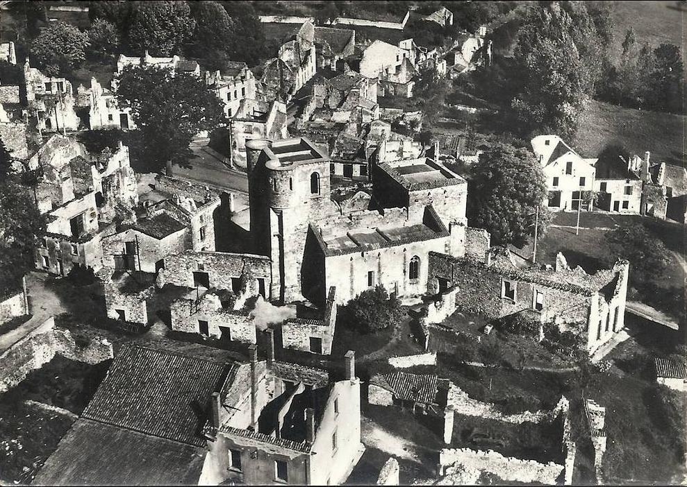This photo is an aerial view of the martyred village of Oradour-sur-Glane, near Limoges in south-west France where 643 innocent civilians were killed on 10 June 1944 during the Second World War (1939-45). The massacre took place in possible retaliation for the capture of SS Sturmbannführer Helmut Kämpfe (1909-44) by the local resistance the day before in another town of the region. After the population was cruelly murdered, the whole town was set on fire. On 28 November 1944, the French Provisional Government decided to preserve the remains of Oradour-sur-Glane and make it a place of remembrance and self-reflection for visitors.