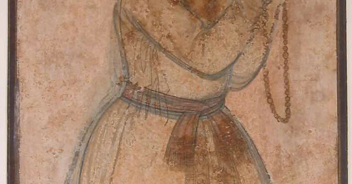 Portrait of Emperor Akbar Praying, ink and opaque watercolor on paper, early 17th century, India.
