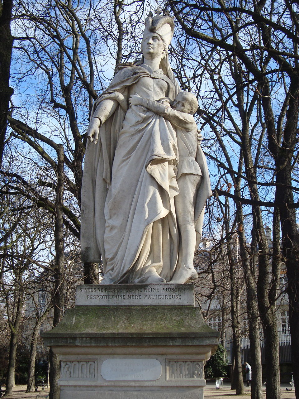 A statue of Margaret of Anjou, queen consort of England (r. 1445-1471). Margaret was married to Henry VI of England (r. 1422-1461 and 1470-71). Statue by Ferdinand Taluet, 1877, in Luxembourg Garden, Paris.