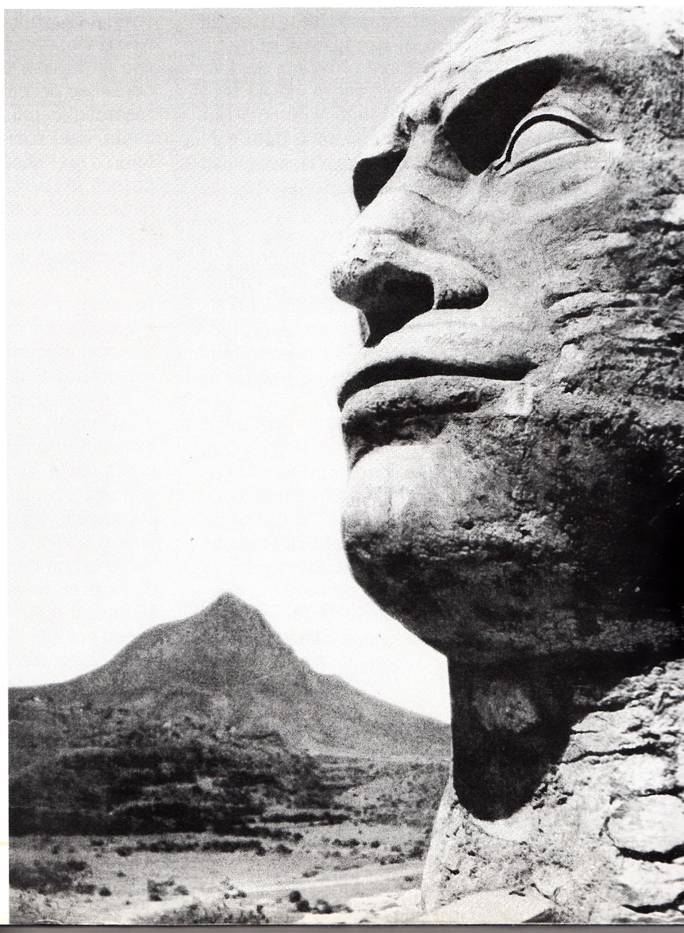 Monumental sculpture of the head of Benito Mussolini, the leader of fascist Italy from 1922 to 1945, realised in 1935 near Adwa, Ethiopia. The sculpture was later demolished during the Second World War (1939-45).