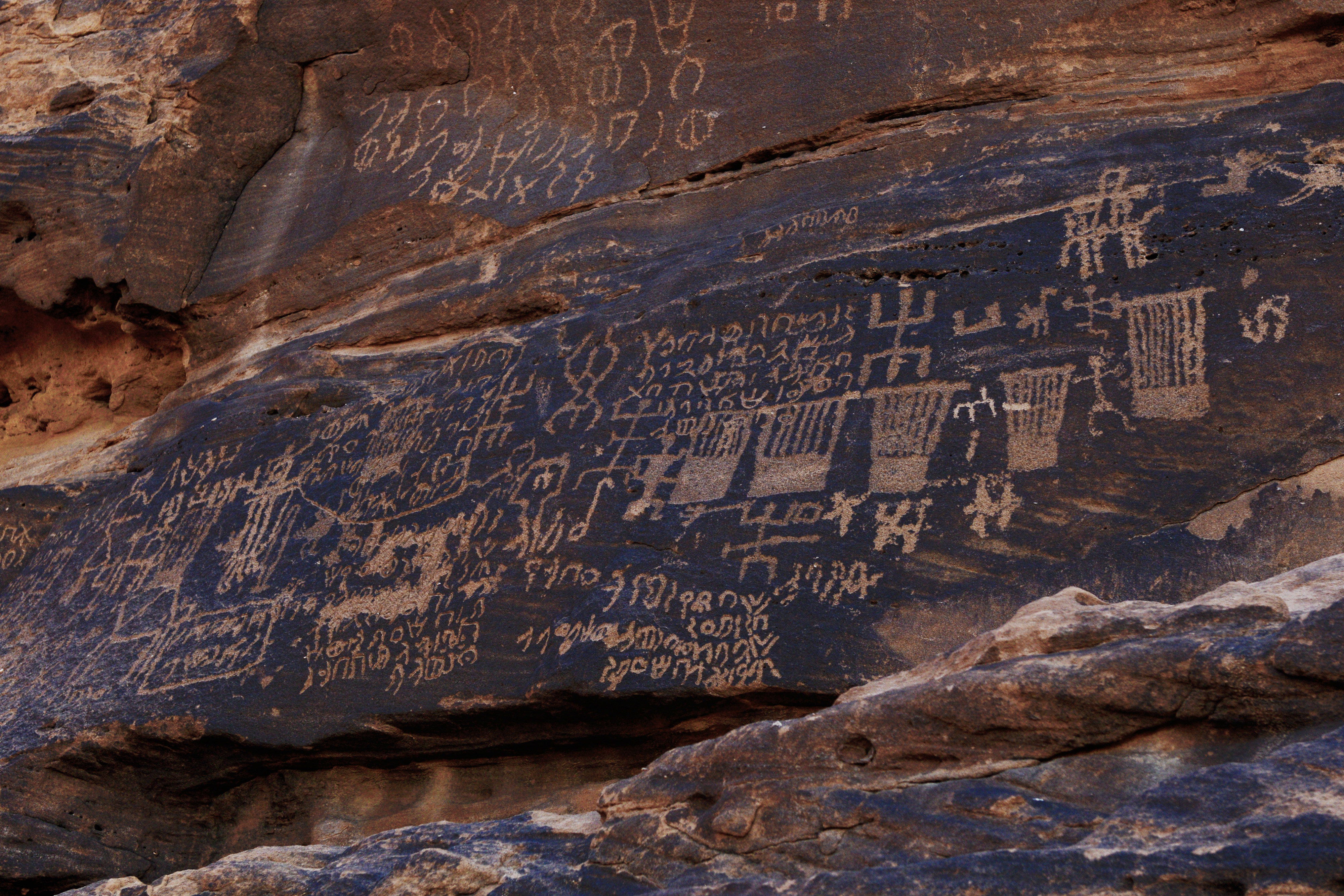 Jabal Ikmah, often referred to as an ‘open-air library’, contains hundreds of inscriptions and pictograms engraved and carved in relief on the rock faces and boulders of a gorge, not far from Dadan, the seat of the Dadanite and Lihhyanite kingdoms, at AlUla, Saudi Arabia. Most inscriptions are written in the Dadanitic script and language and date to the second half of the first millennium BCE.