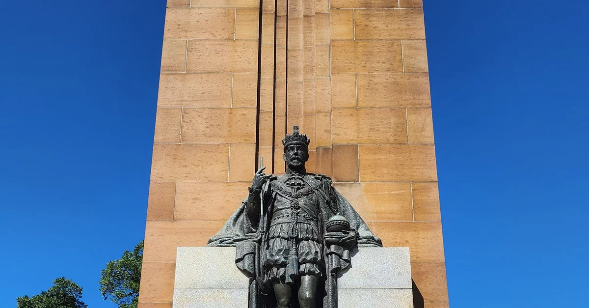 The King George V Memorial, commemorating George V, king of the United Kingdom and the British Dominions (r. 1910-1936) in Melbourne, Australia, designed by William Leslie Bowles, 1952. The image shows the statue before it was beheaded by anti-monarchist activists in January 2024.