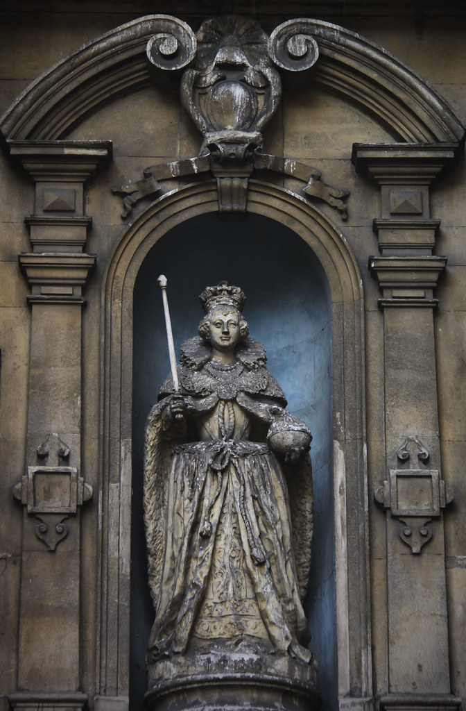 A statue of Queen Elizabeth I of England (r. 1558-1603), designed by William Kerwin, 1586.