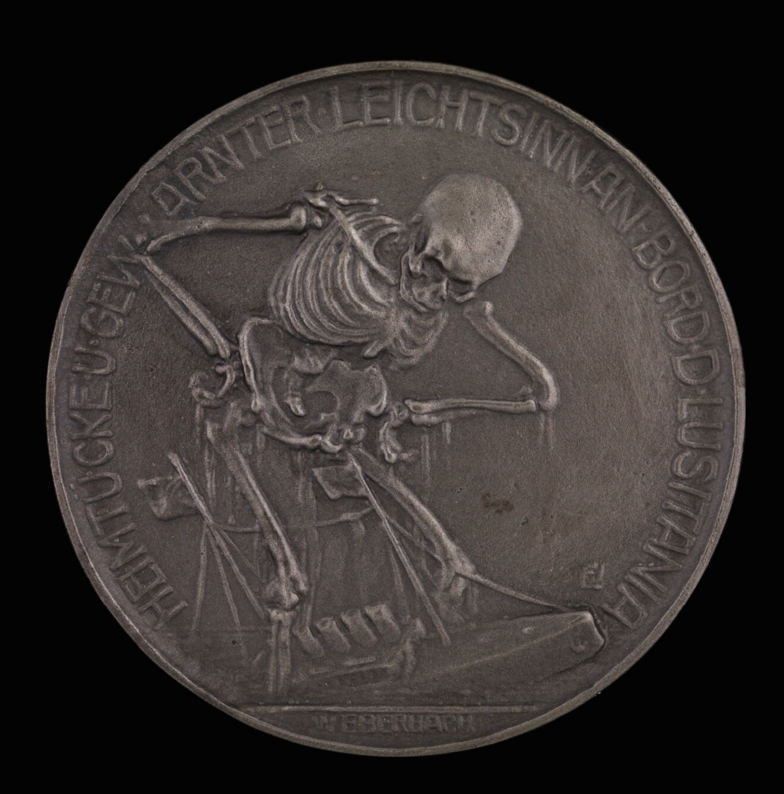 A 1916 German-made medal commemorating the sinking of RMS Lusitania. The liner was sunk off the coast of Ireland by a German U-boat torpedo on 7 May 1915 during the First World War (1914-18). (Imperial War Museums)