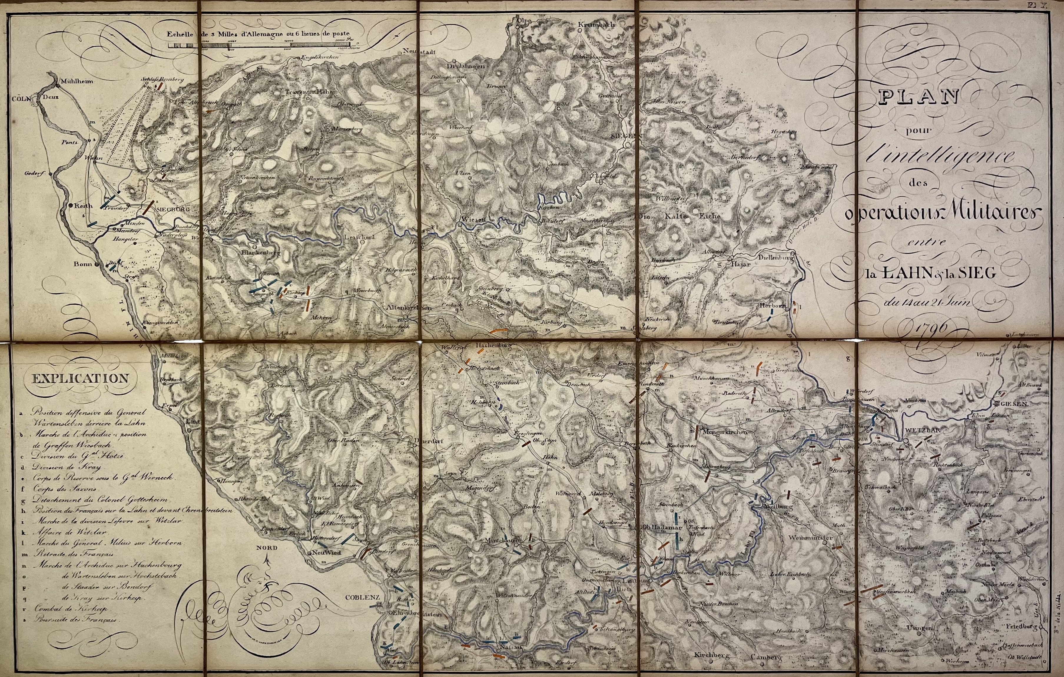 This historical map was produced to support the understanding of military operations conducted between the Lahn and Sieg rivers from 14 to 21 June 1796. It provides a geographic overview of the region during this critical phase of the campaign, serving as a valuable reference for analyzing troop movements and strategic positioning. Source: Votre Carte Ancienne – antique maps of Germany.