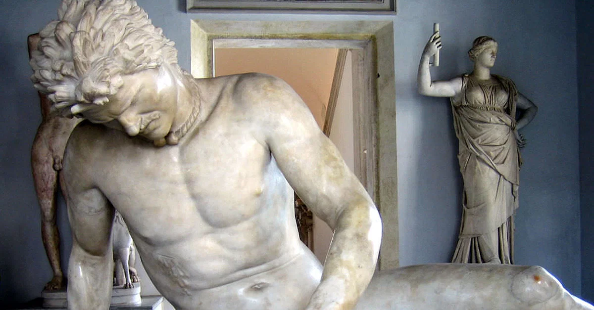 Marble copy of a lost ancient Greek statue known as The Dying Gaul, from ancient Rome (c. 230-220 BCE) commissioned by Attalos of Pergamon in honor of his victory over the Galatians.