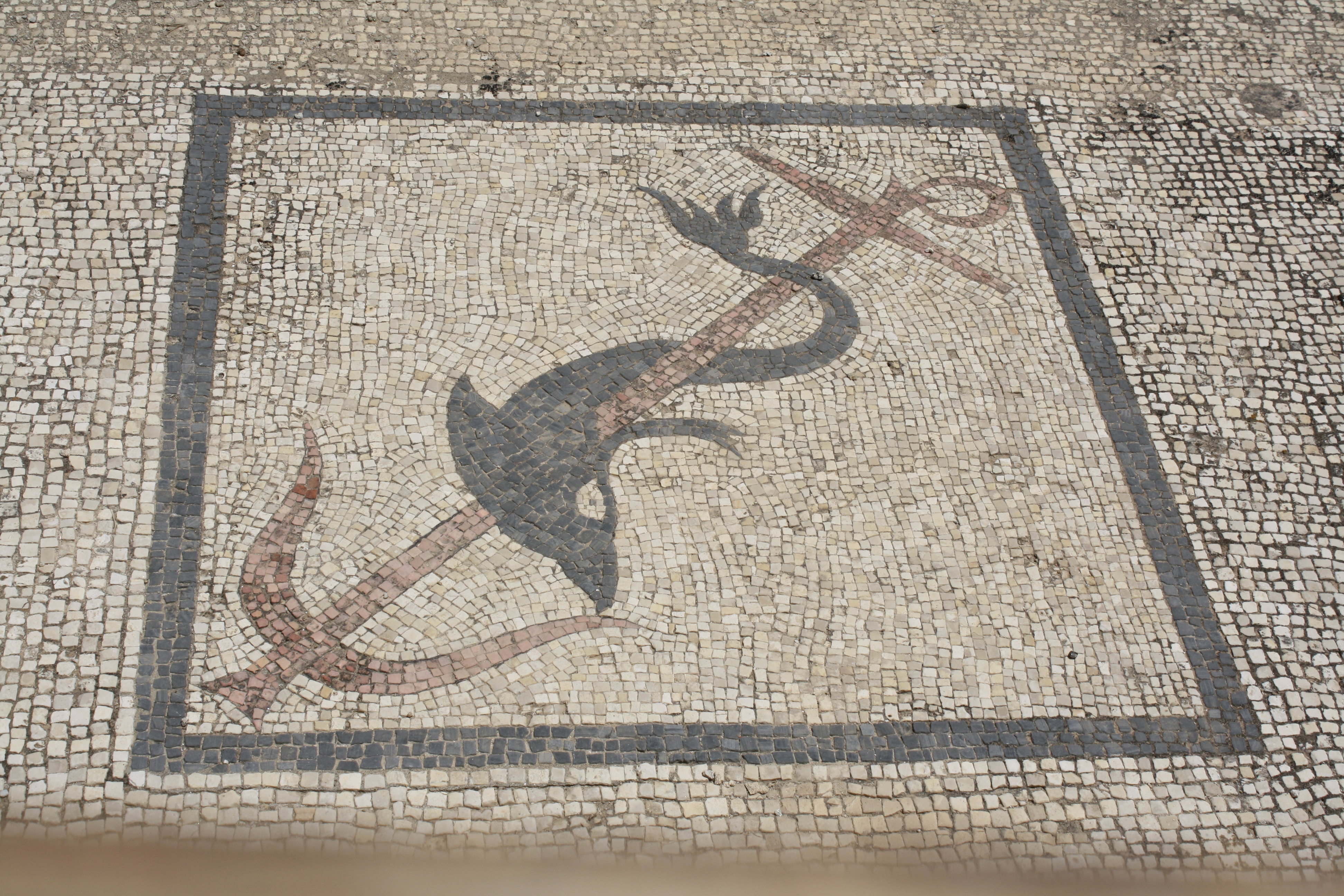 Part of the floor mosaic from the House of the Trident, Delos. It is a motif commonly seen in mosaics at Delos. 3rd-2nd century BCE.