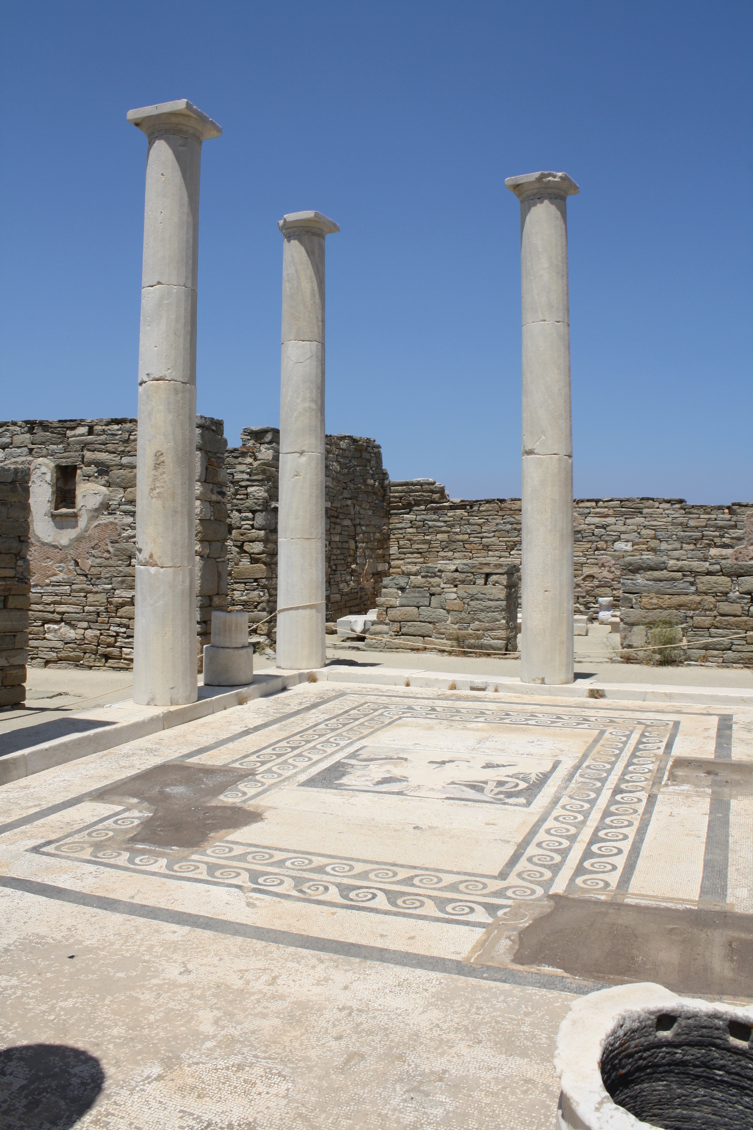 The 5.8 m high columns of the atrium of the House of Dionysos, Delos. 3rd-2nd century BCE. The famous mosaic depicting Dionysos riding a tiger was discovered here.