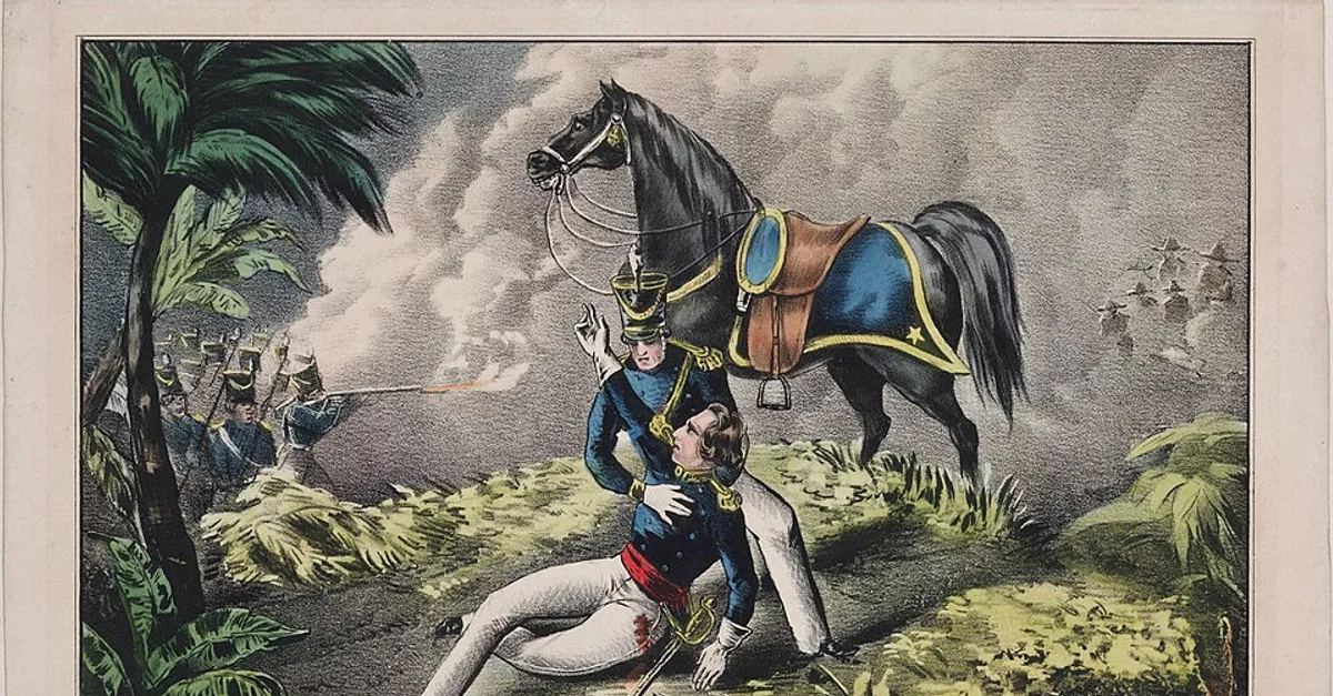 Death of Henry Clay Jr., son of the 'Great Compromiser', at the Battle of Buena Vista. By N. Currier, 1847.