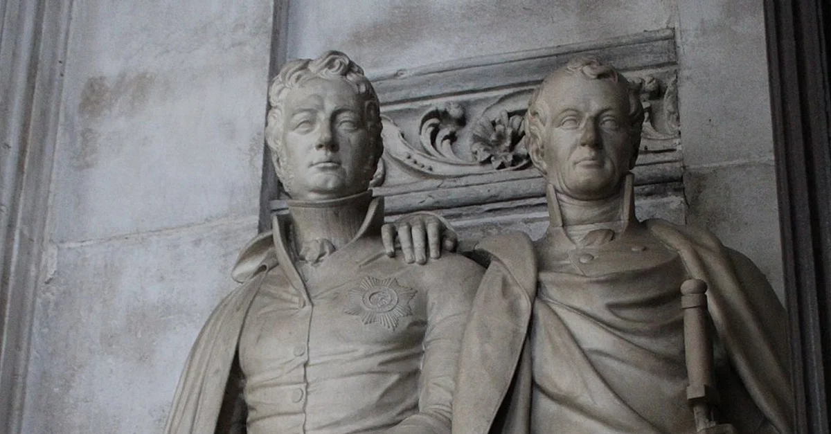 British generals Edward Pakenham and Samuel Gibbs, both of whom were killed at the Battle of New Orleans (8 Jan 1815), marble memorial statues by Richard Westmacott at St. Paul's Cathedral in London. Photo by 14GTR, 2022.