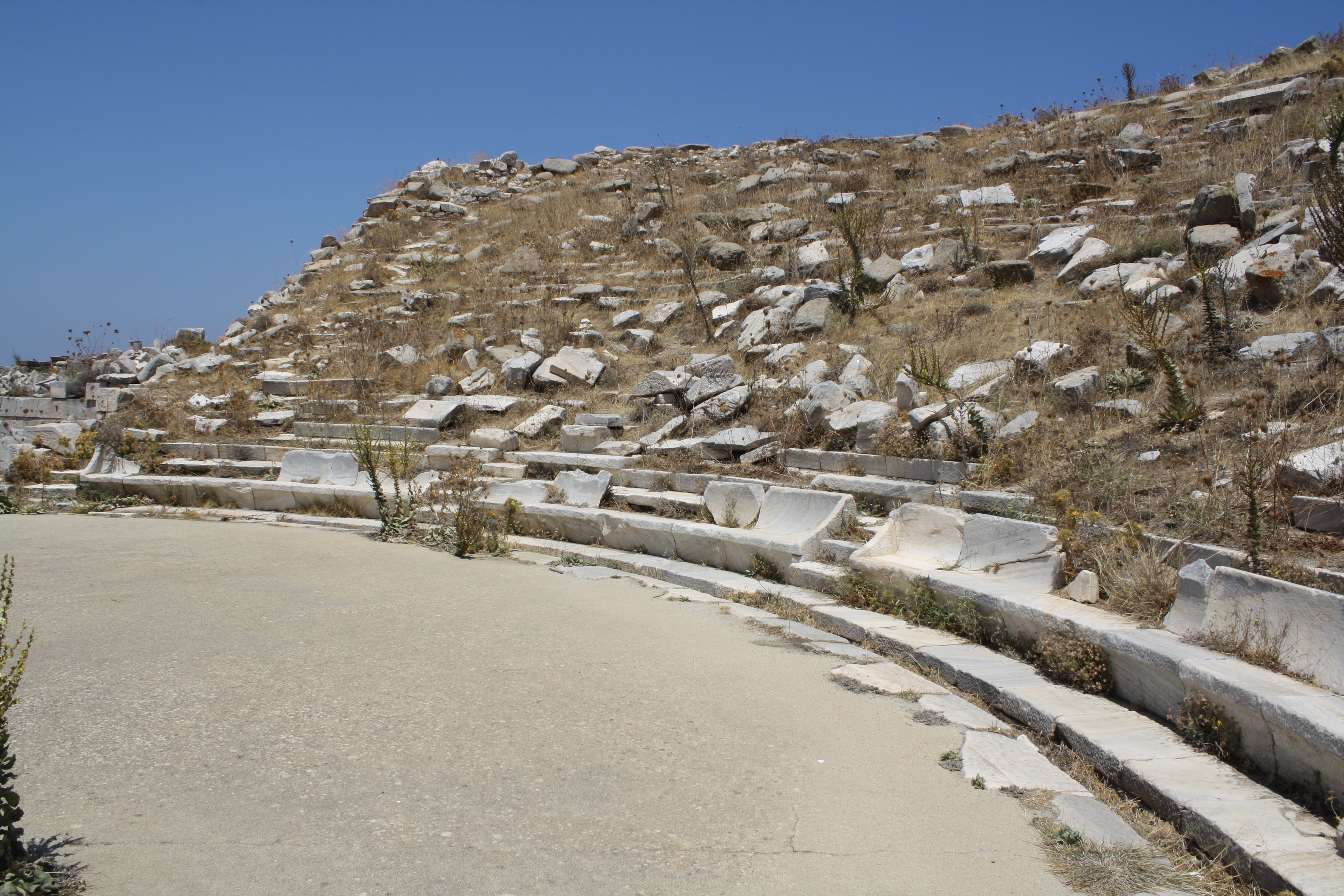 The theatre of Delos, c. 300 BCE. The theatre had a capacity for 5,000 spectators and the front row has marble seats with backs for dignitaries.