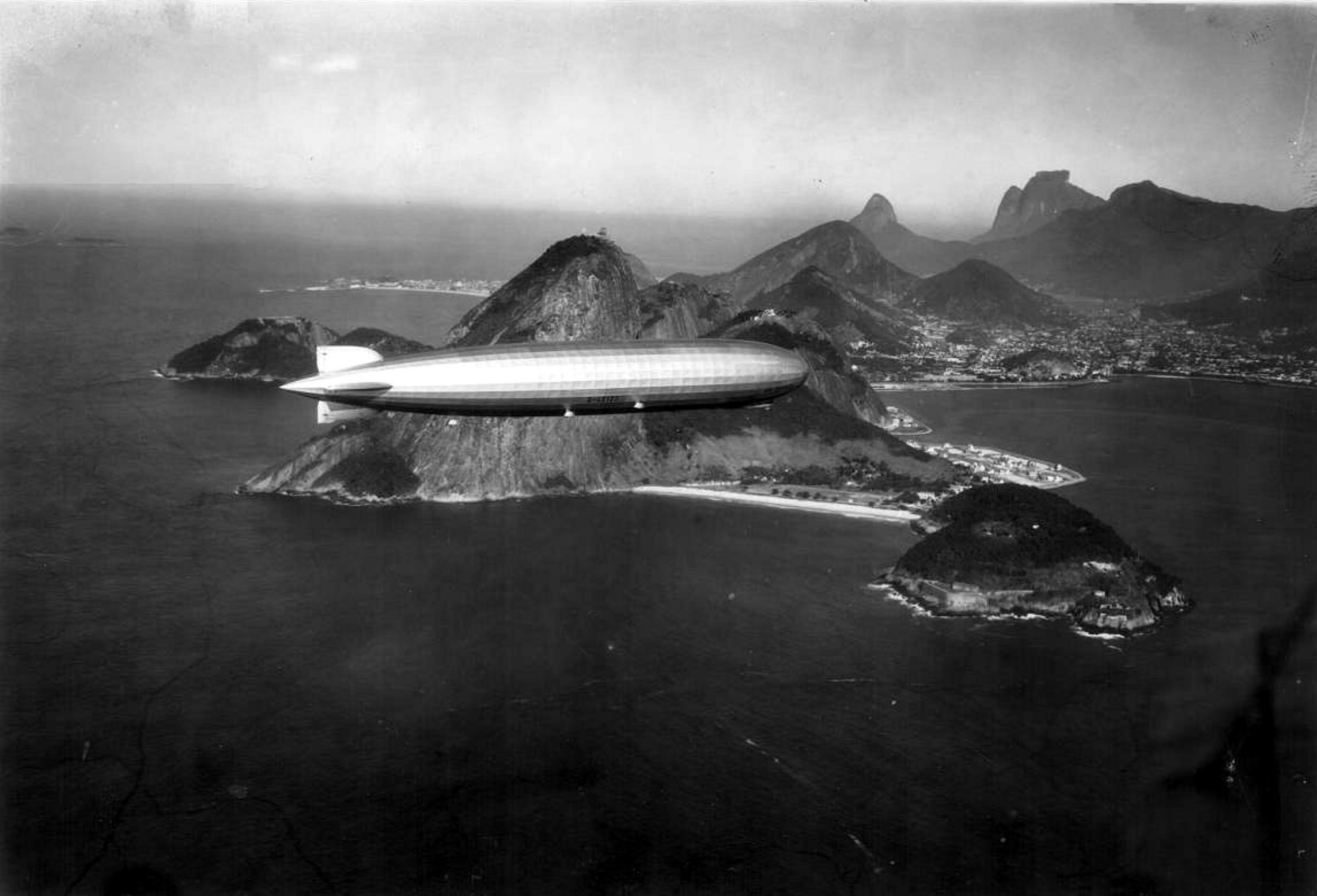 The Zeppelin airship LZ 127 Graf Zeppelin flying over Rio, Brazil, 1930. The Graf Zeppelin completed a circumnavigation of the globe in 1929.